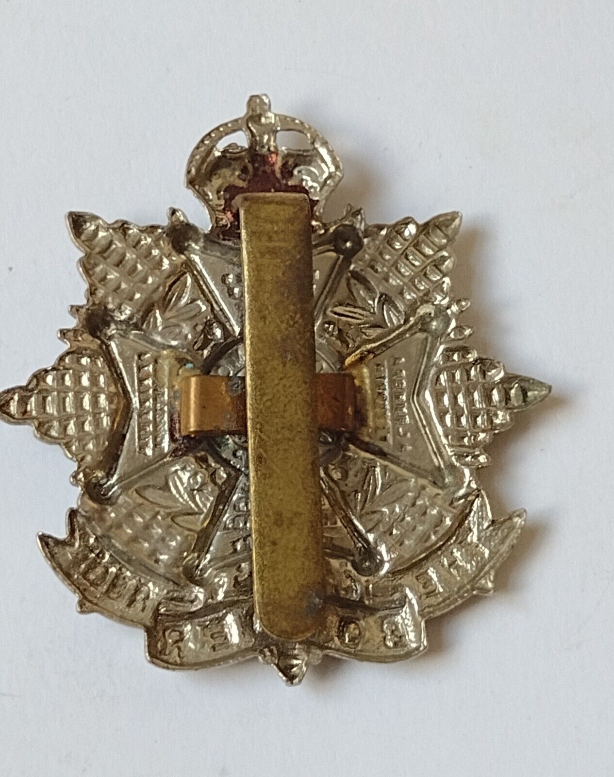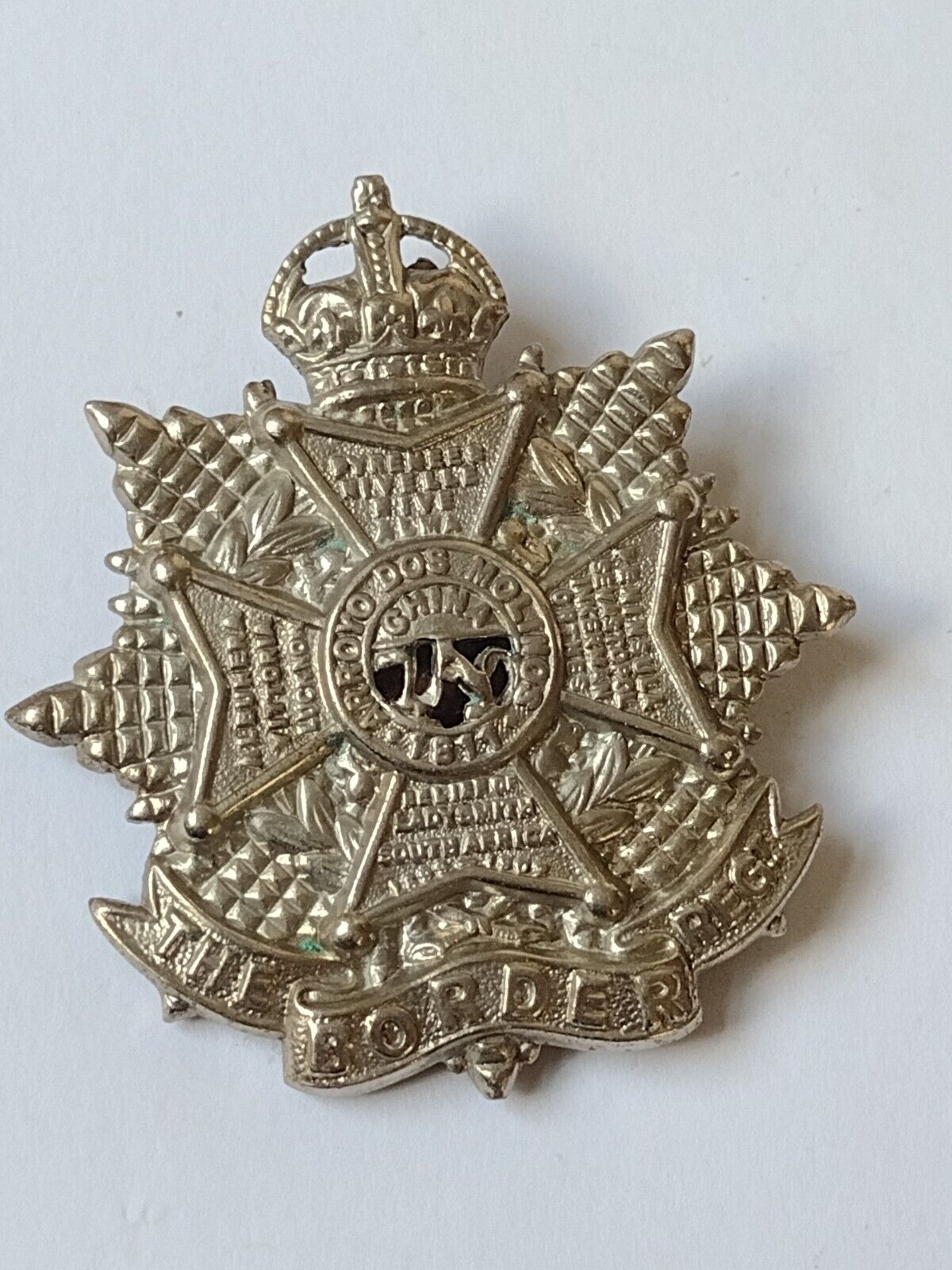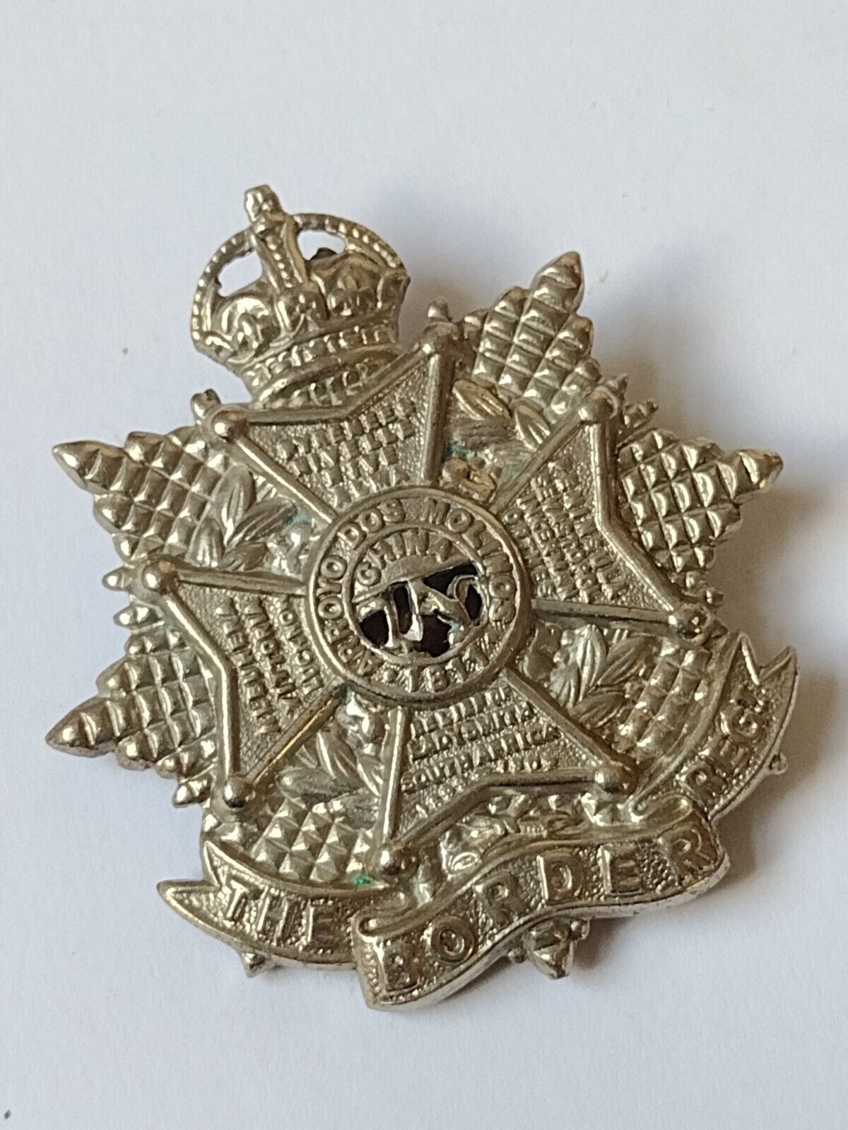 WW1 The Border Regiment Cap Badge KC White Metal Slider 50mm Antique Original