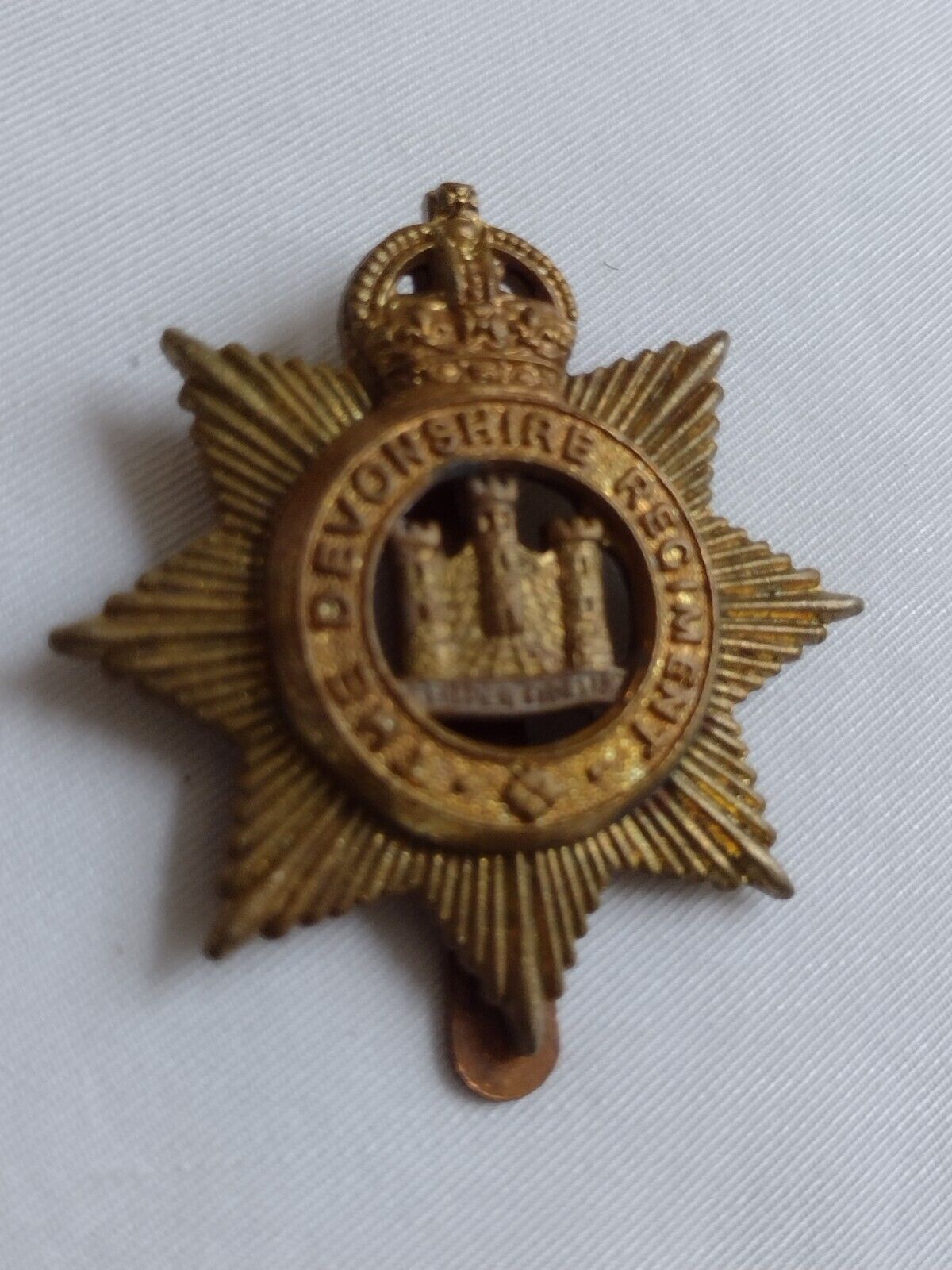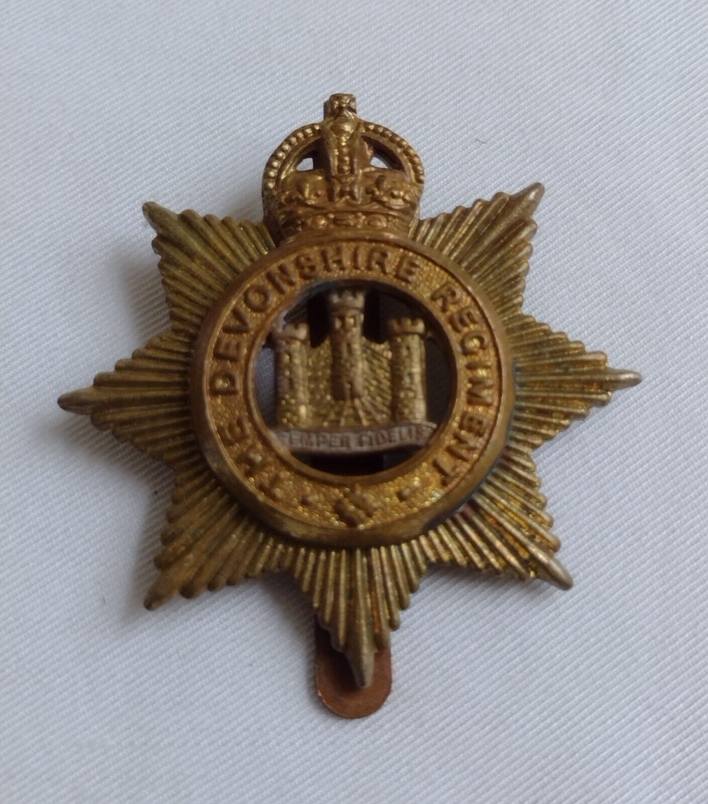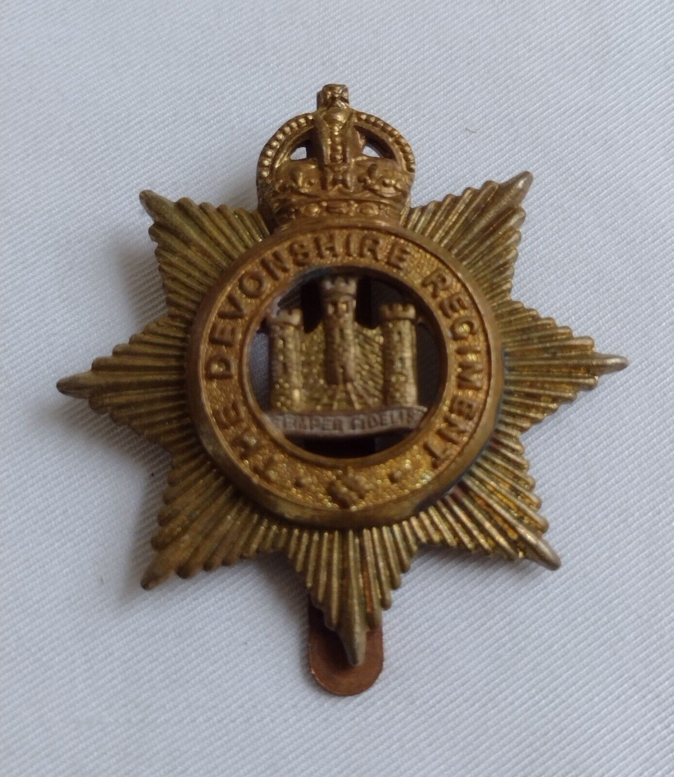 WW1 The Devonshire Regiment Cap Badge Bi-Metal Slider Antique Org