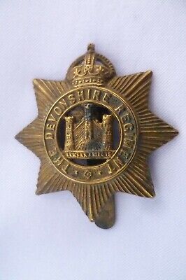 WW1 The Devonshire Regiment Cap Badge KC All Brass Slider Antique Org – Rare
