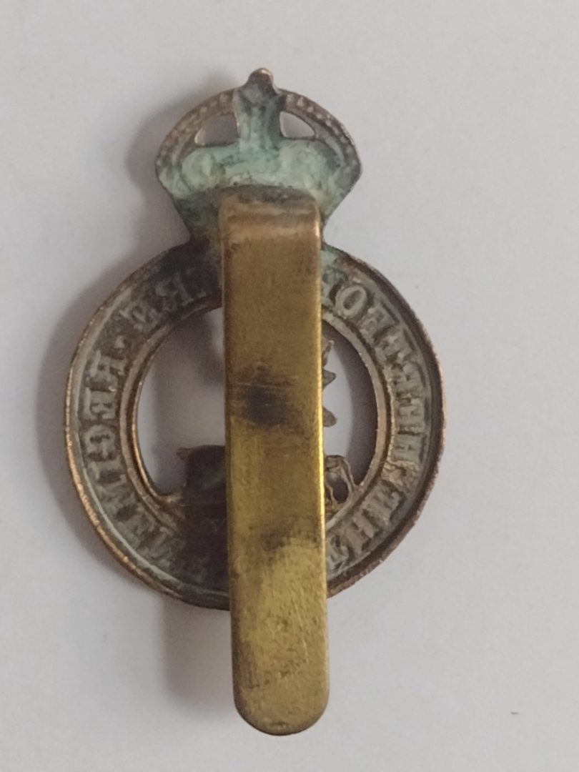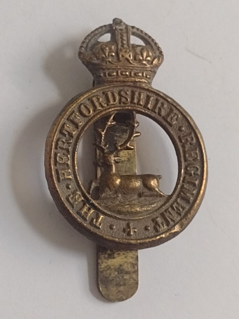 WW1 The Hertfordshire Regiment Cap Badge KC Brass Economy Antique – Original