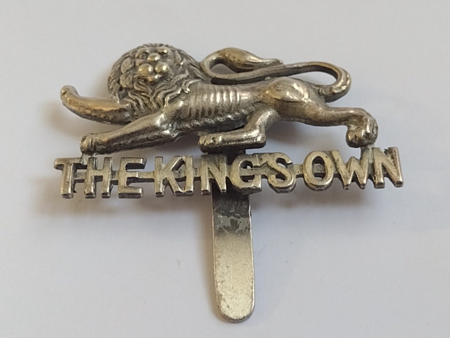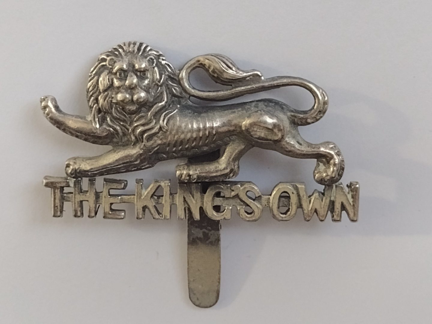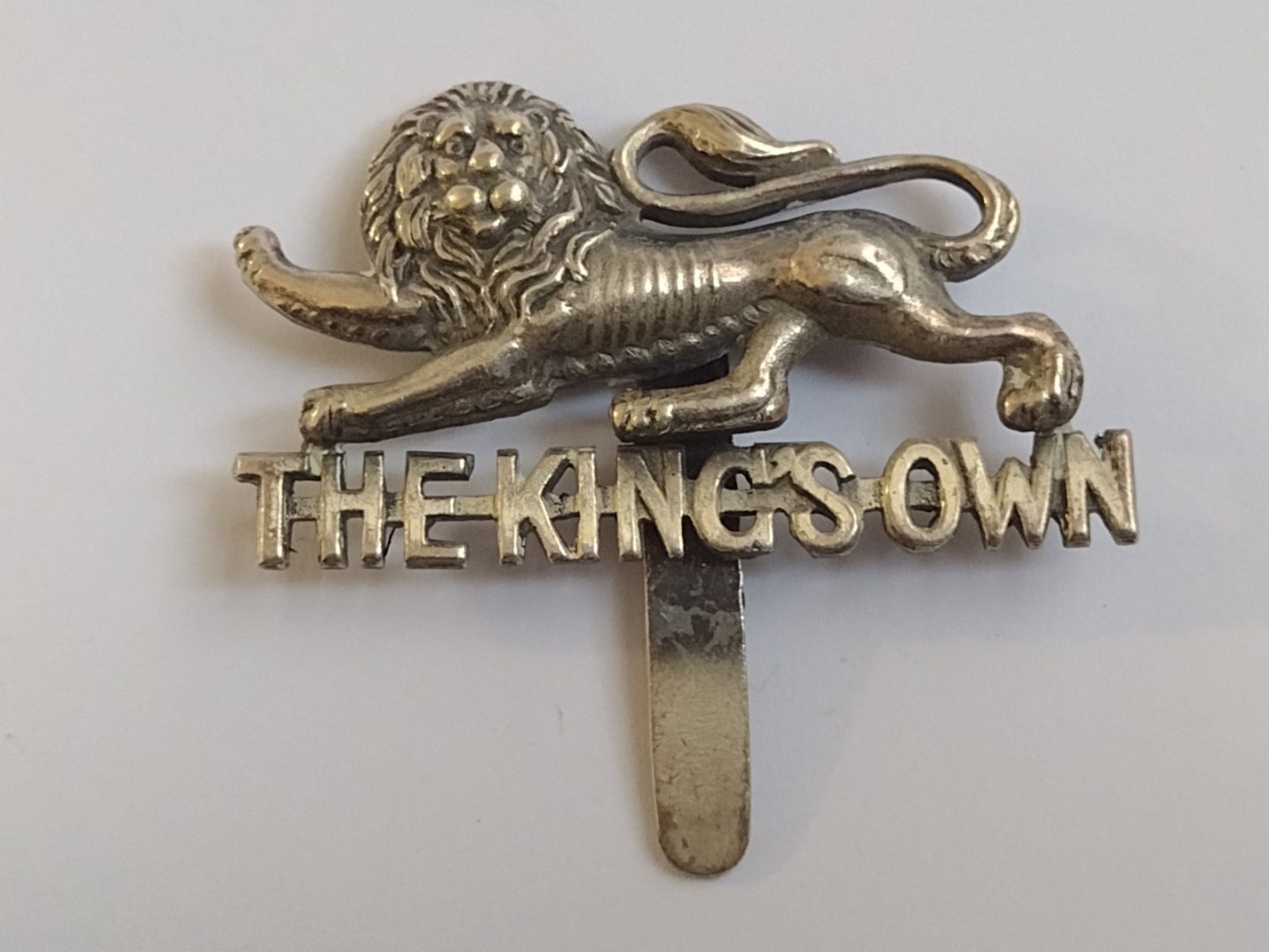 WW1 The King’s Own Royal Regiment Cap Badge Silver Grove MFG B’Ham – Original