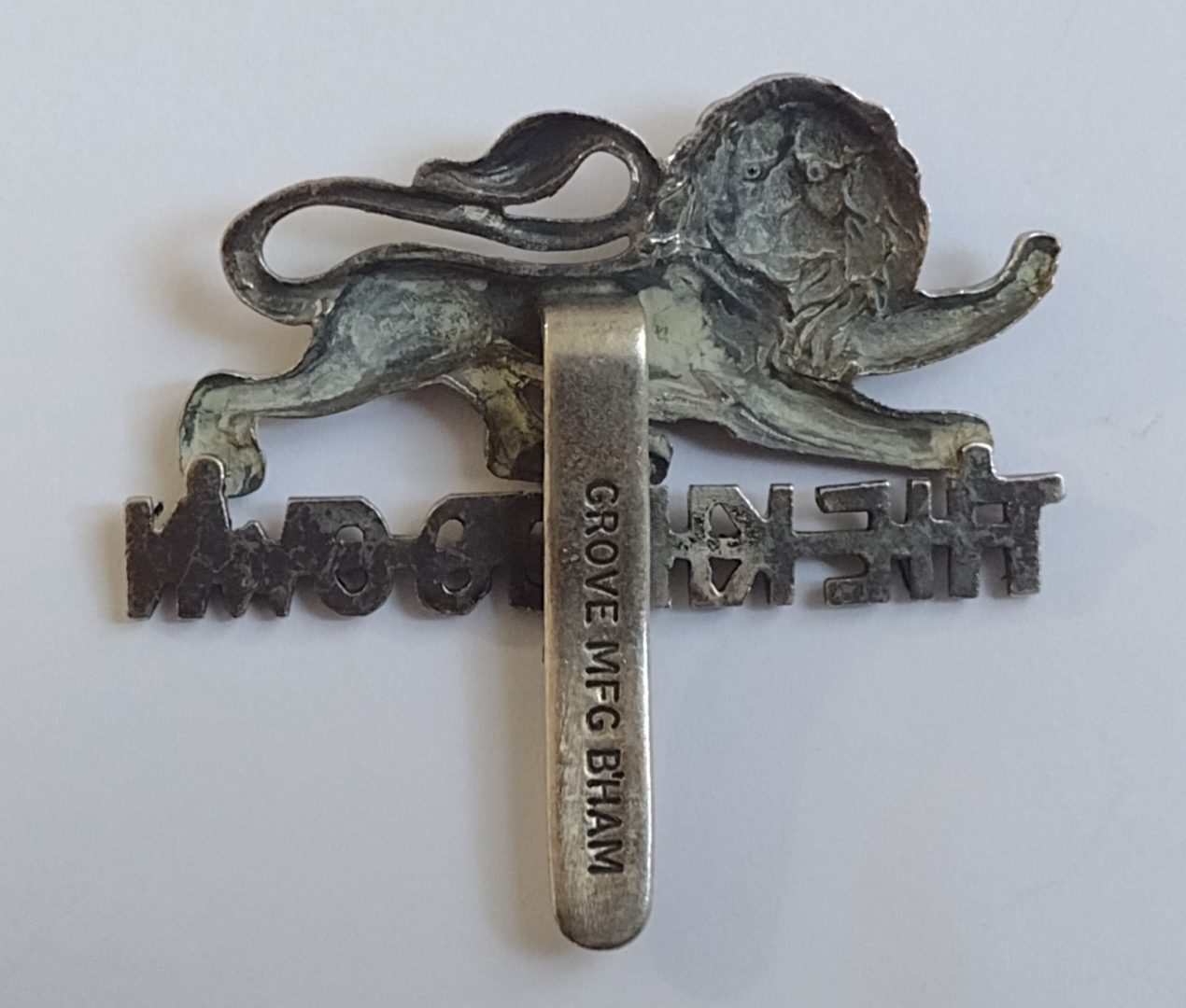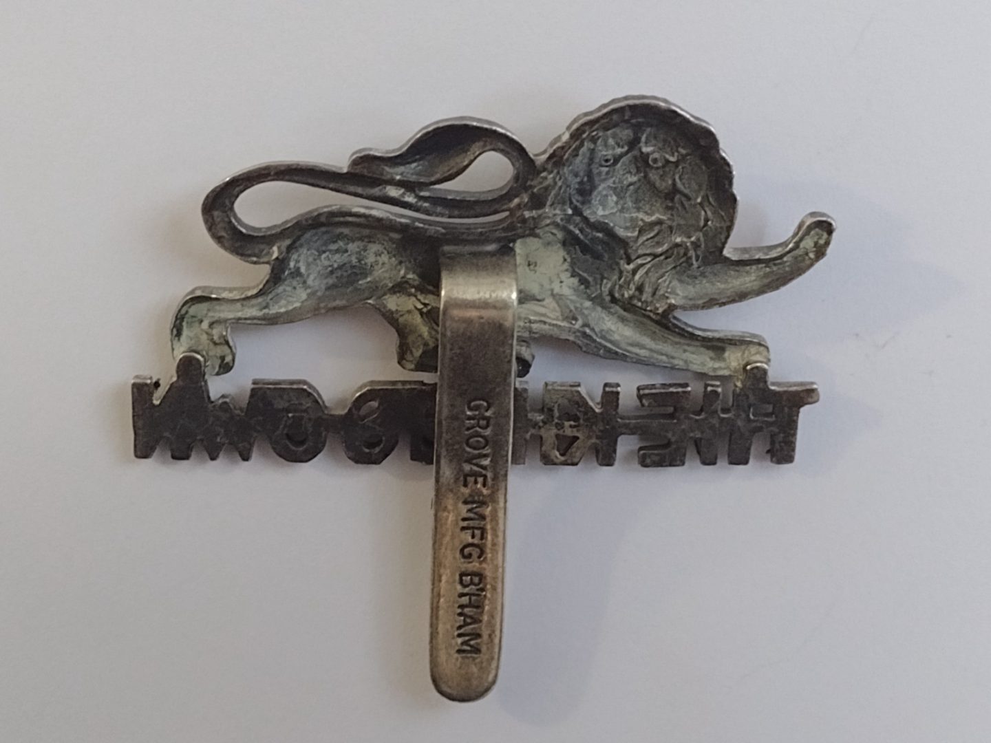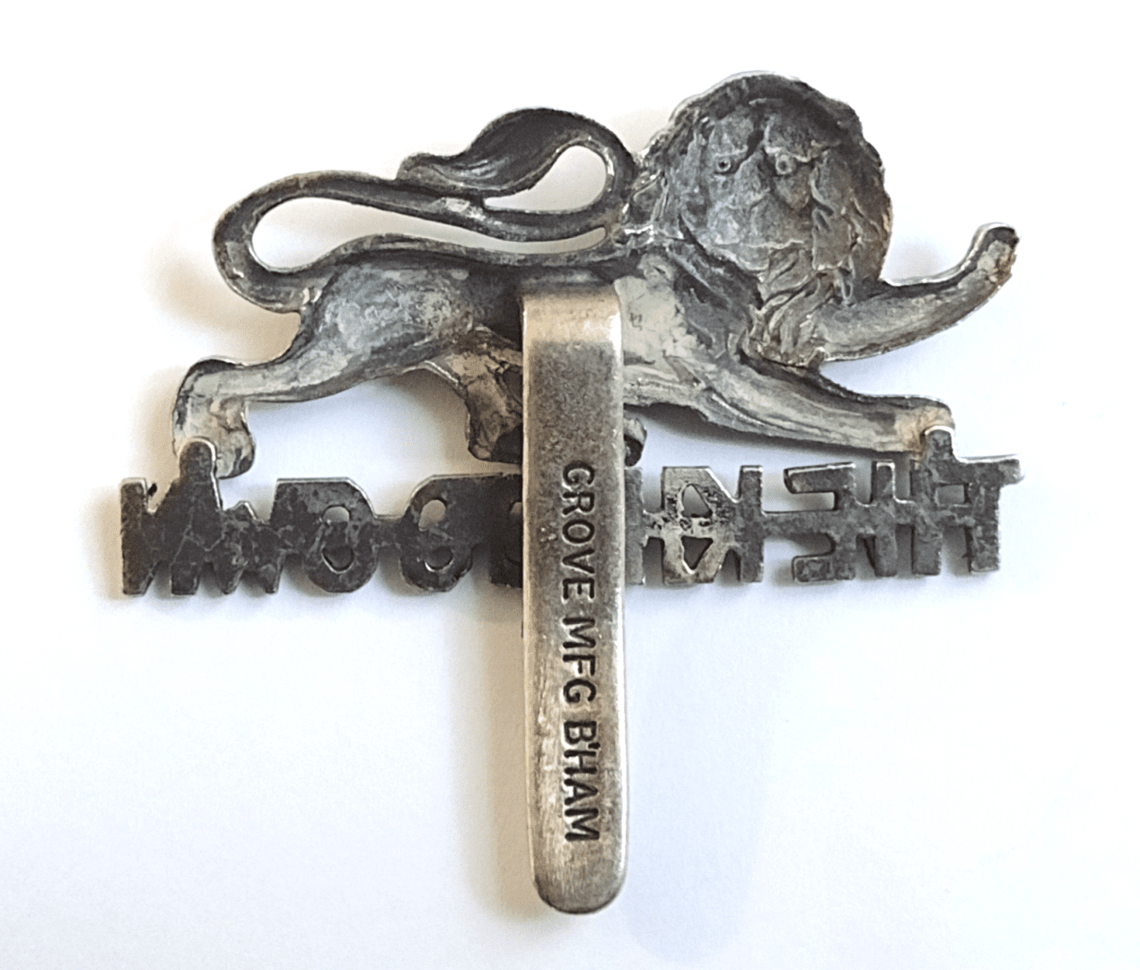 WW1 The King’s Own Royal Regiment Cap Badge Silver Grove MFG B’Ham – Original