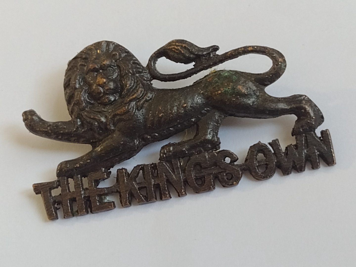 WW1 The King’s Own Royal Regiment Cap Badge Solid Bronze Antique – Original