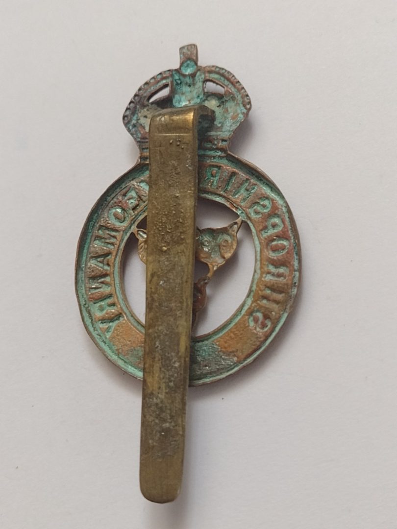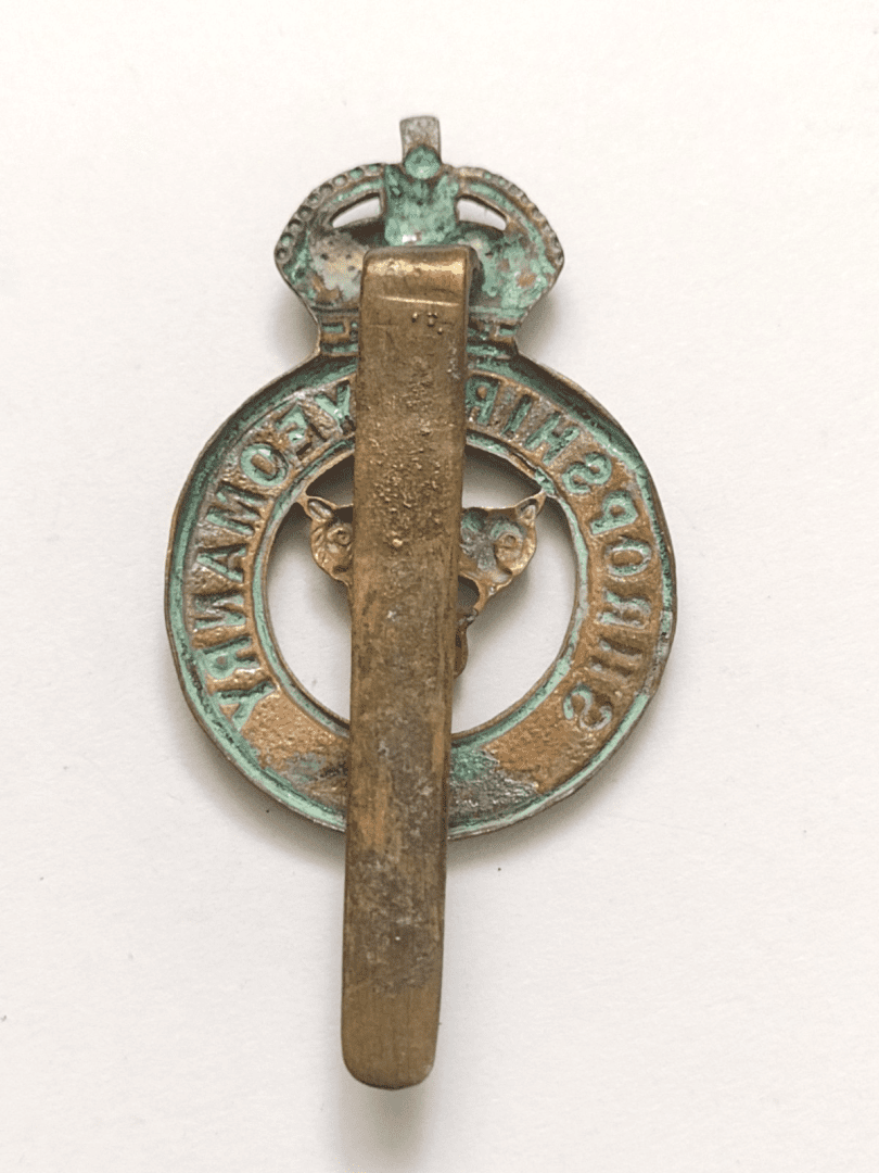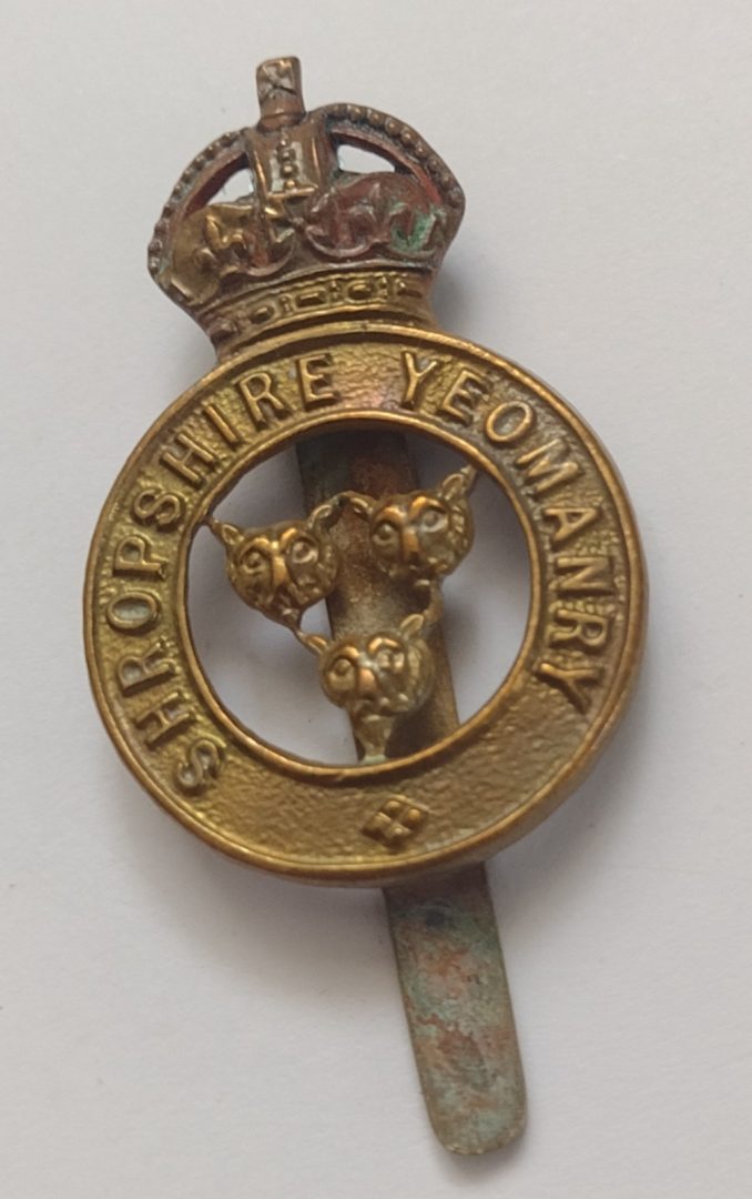WW1 The Shropshire Yeomanry Cap Badge KC Brass Economy Slider Antique Original