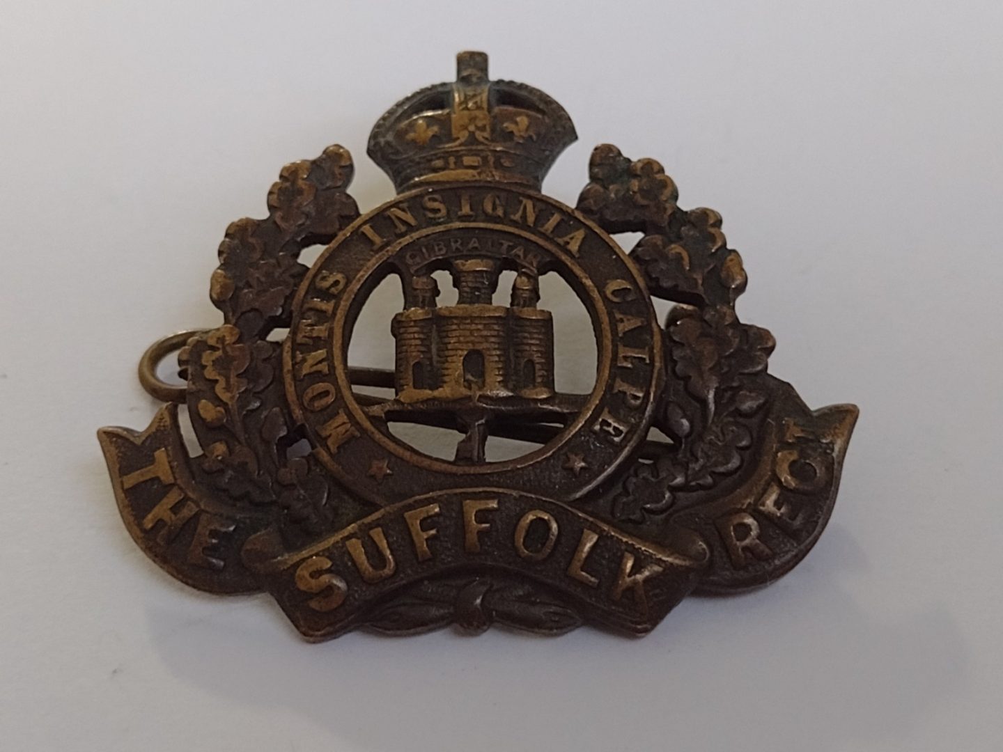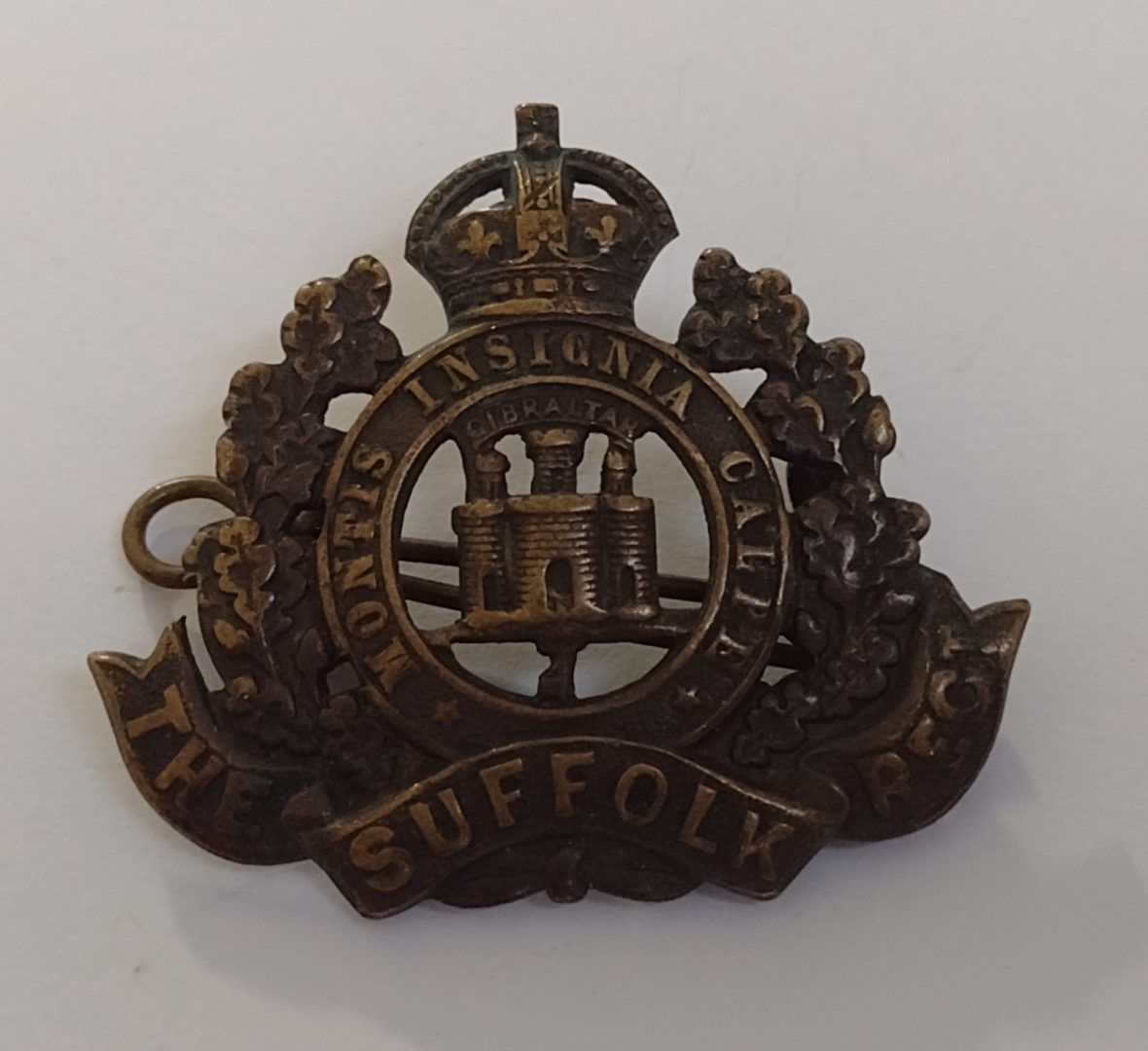 WW1 The Suffolk Regiment Cap Badge KC Solid Bronze 2 Lugs Antique – Original