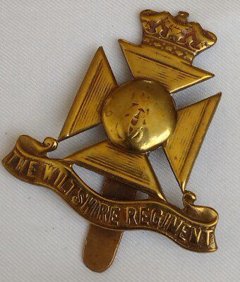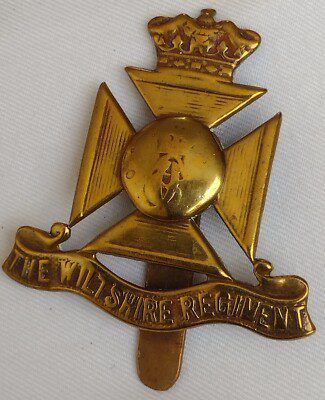 WW1 The Wiltshire Regiment Cap Badge All Brass Slider ANTIQUE Original