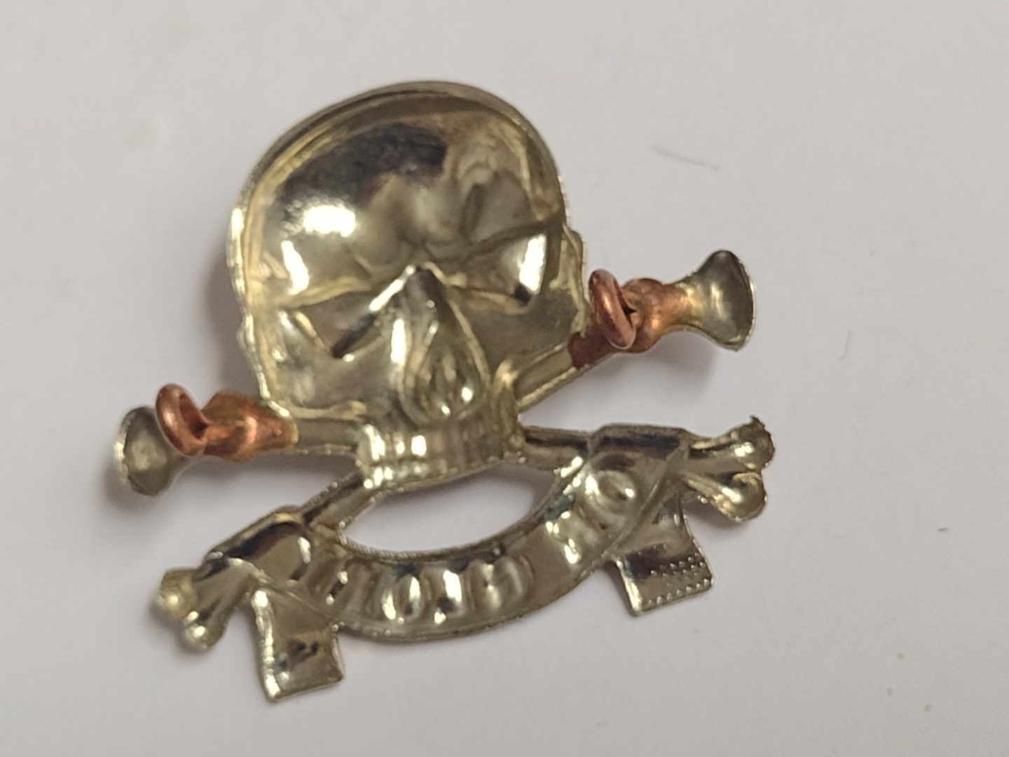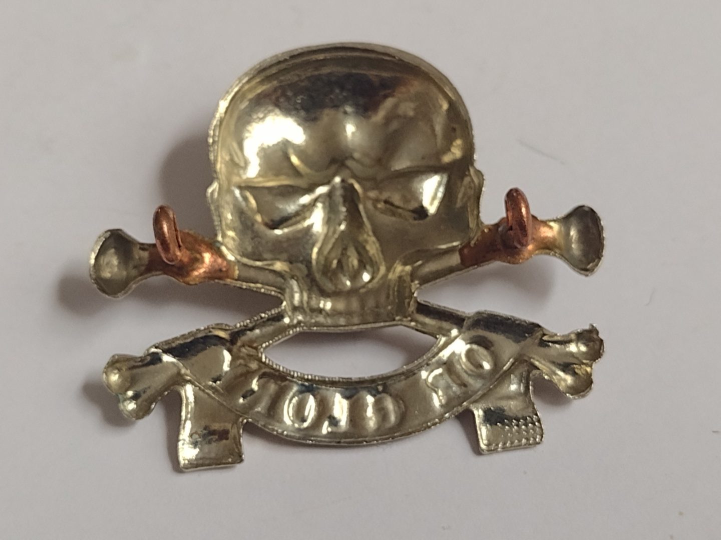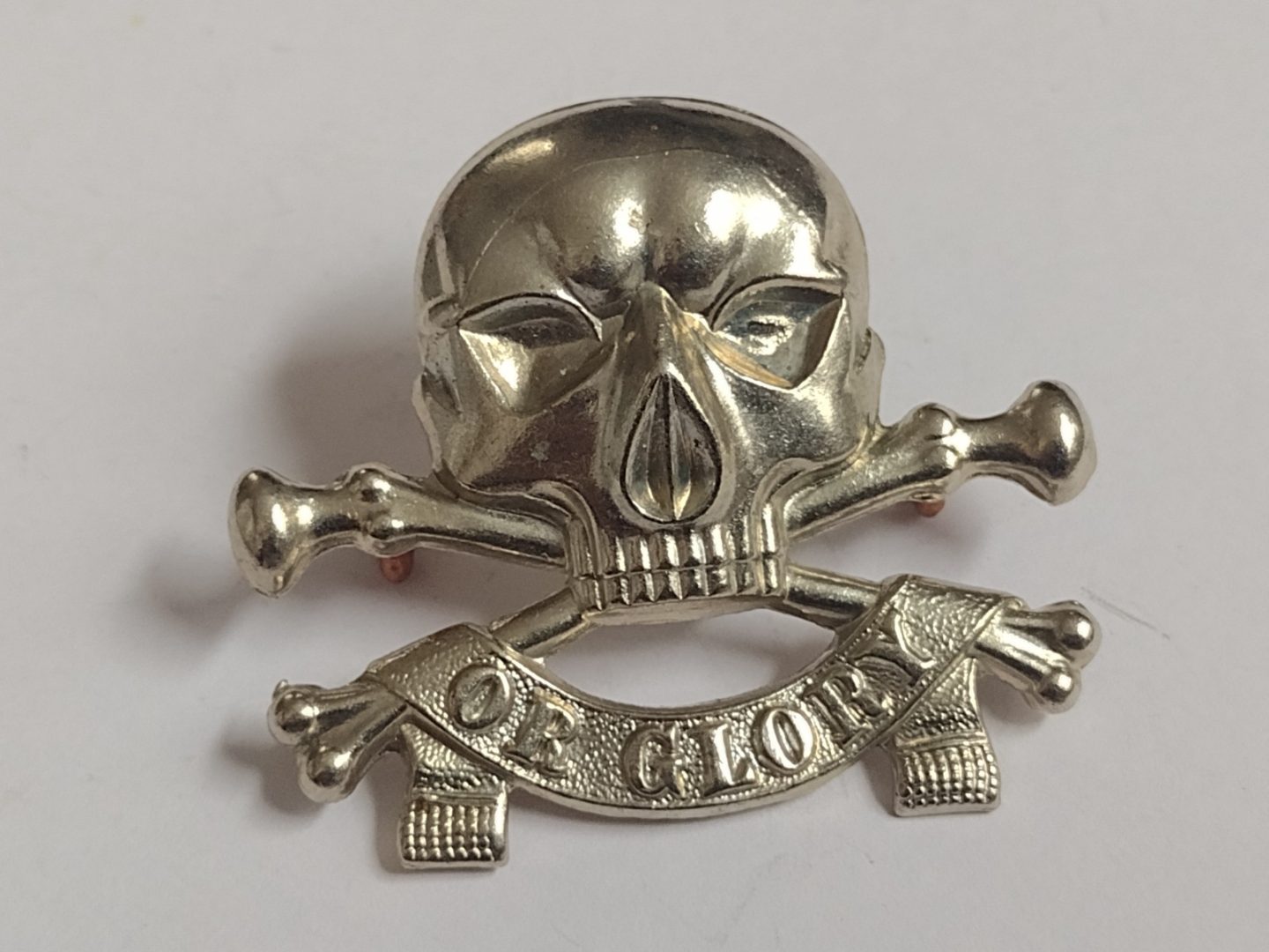 WW2 17th/21st Lancers Death or Glory Cap Badge Deaths Head White Metal Vintage