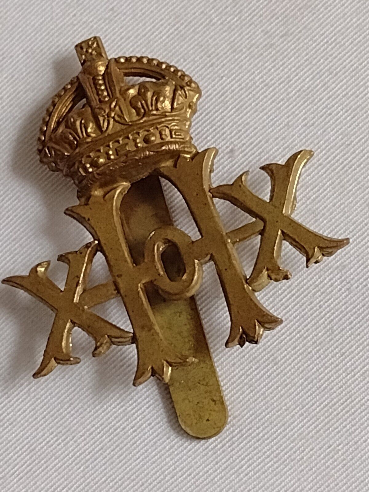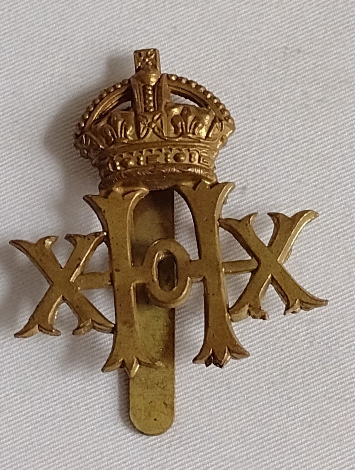 WW2 20th Hussars Cap Badge KC Brass Slider 42mm Vintage Org