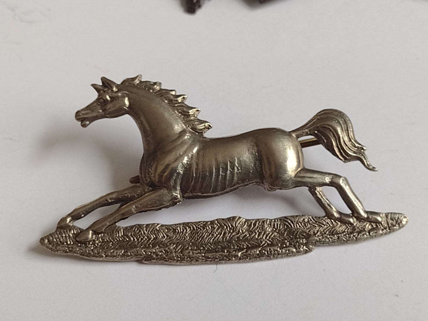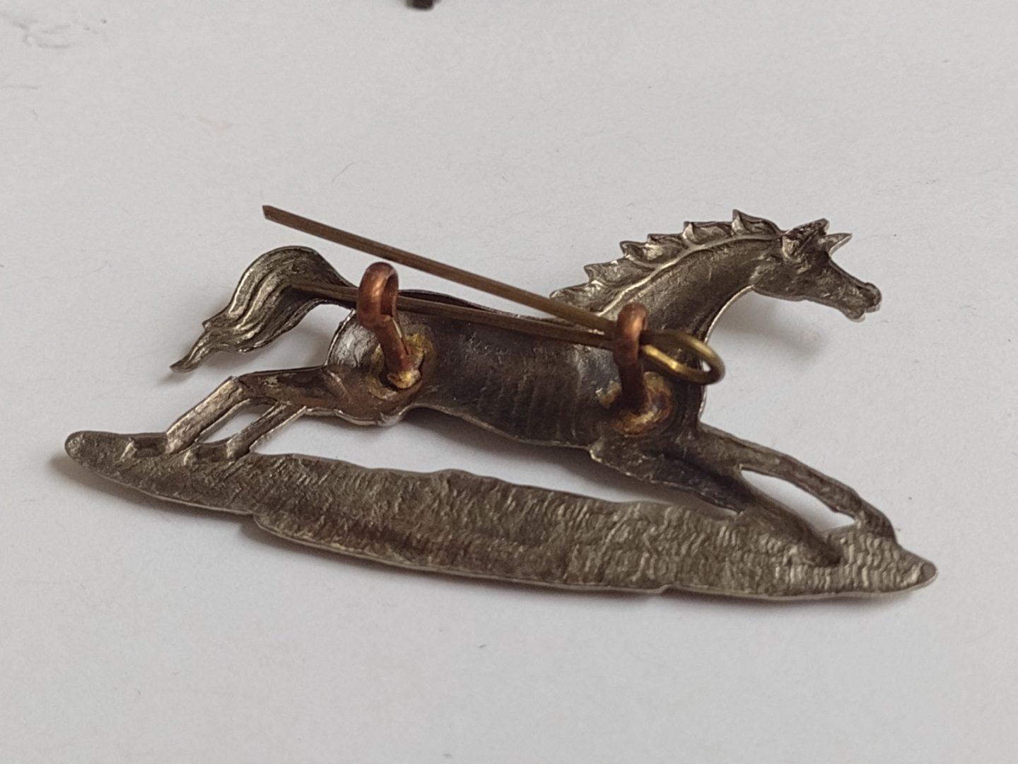 WW2 3rd King’s Own Hussars Cap Badge White Metal 2Lugs 38x71mm Vintage Original