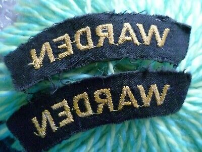 WW2 Air Raid WARDEN Cloth Shoulder Cloth Badge Embroiderry on Black PAIR – Org