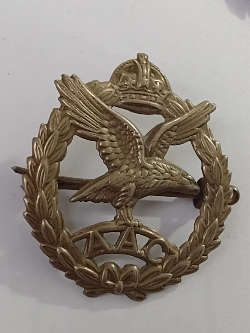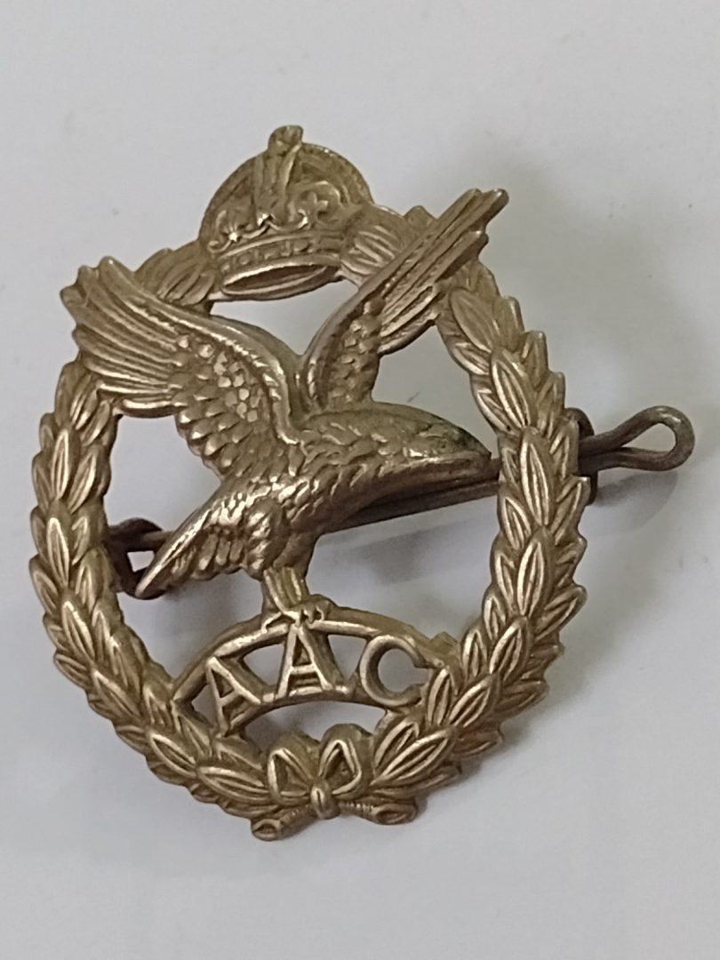 WW2 Army Air Corps (AAC) Cap Badge KC White Metal Vintage – Original