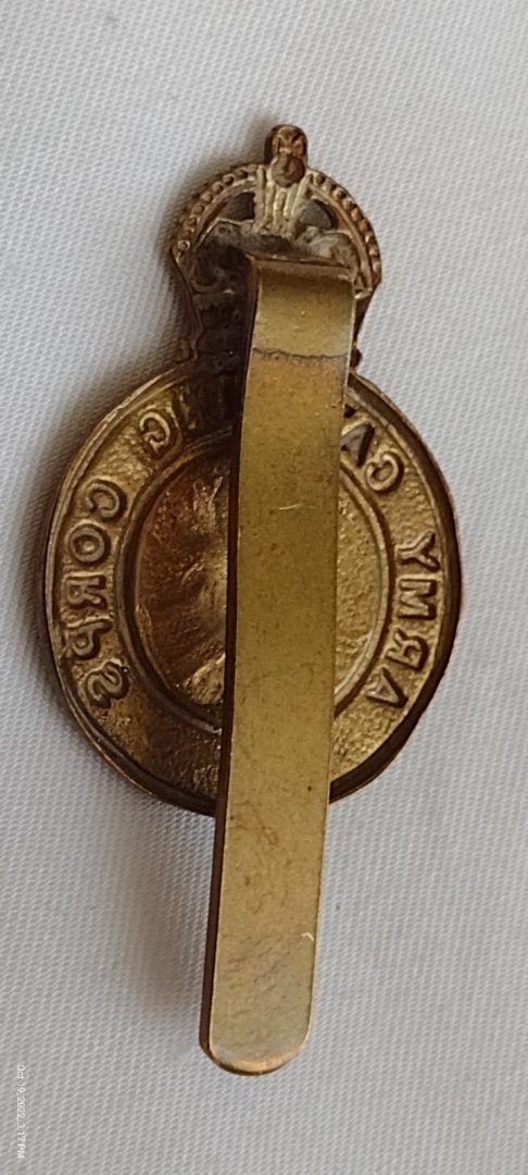 WW2 Army Catering Corps Cap Badge KC All Brass Slider Vintage Original