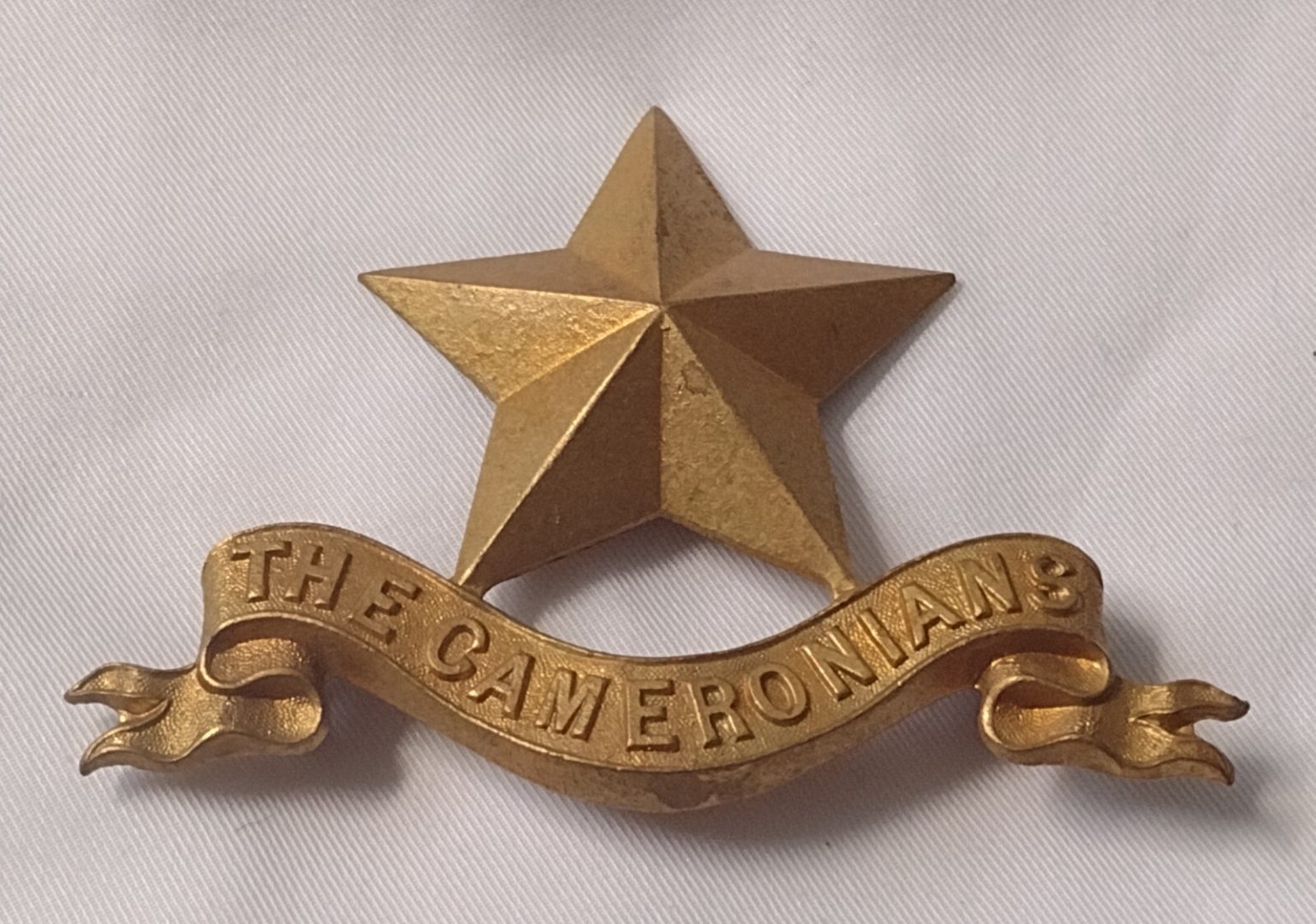 WW2 Cameronians Scottish Rifles Pipers Glengarry Cap Badge Brass 2 Lugs Vintage
