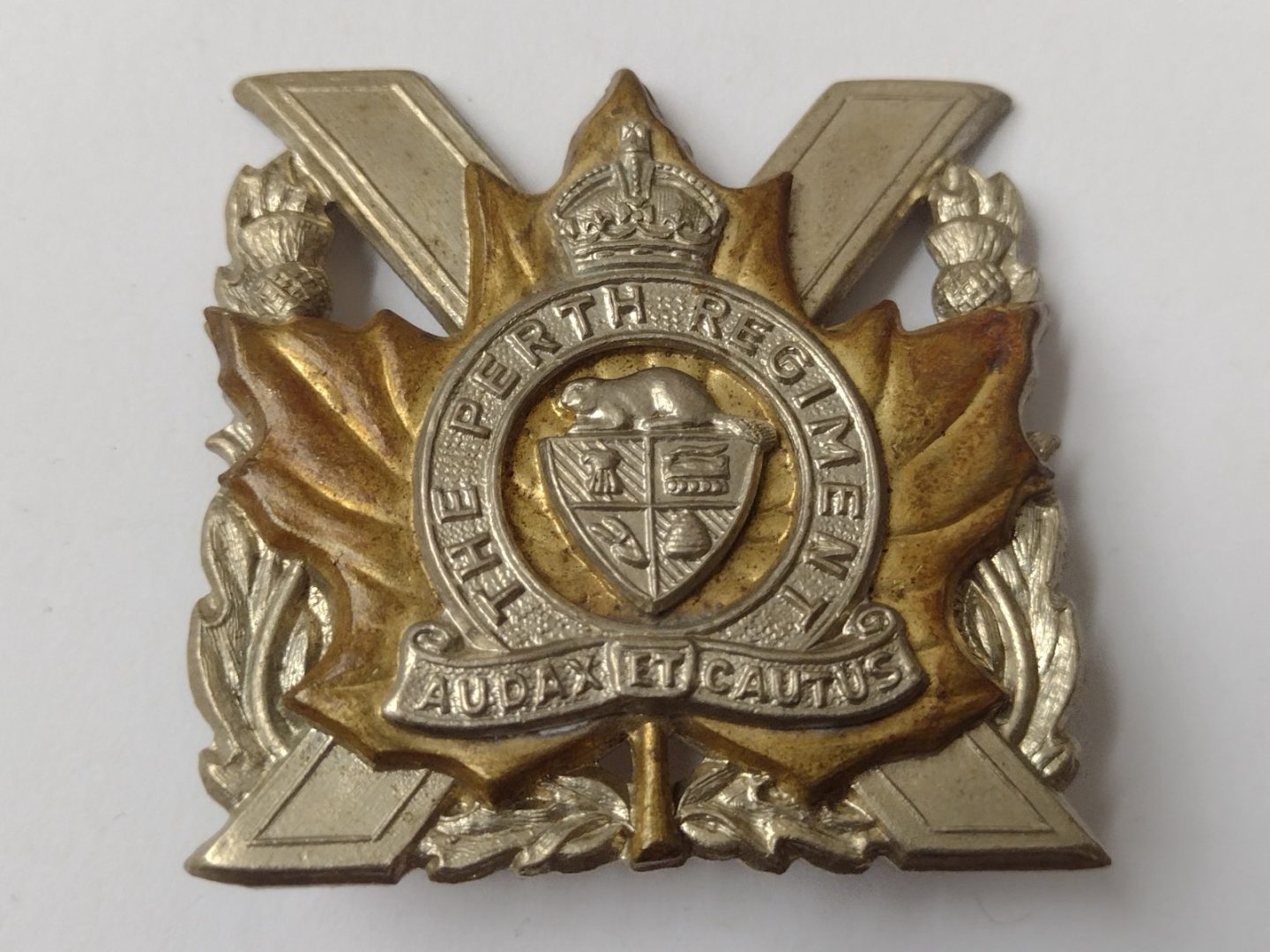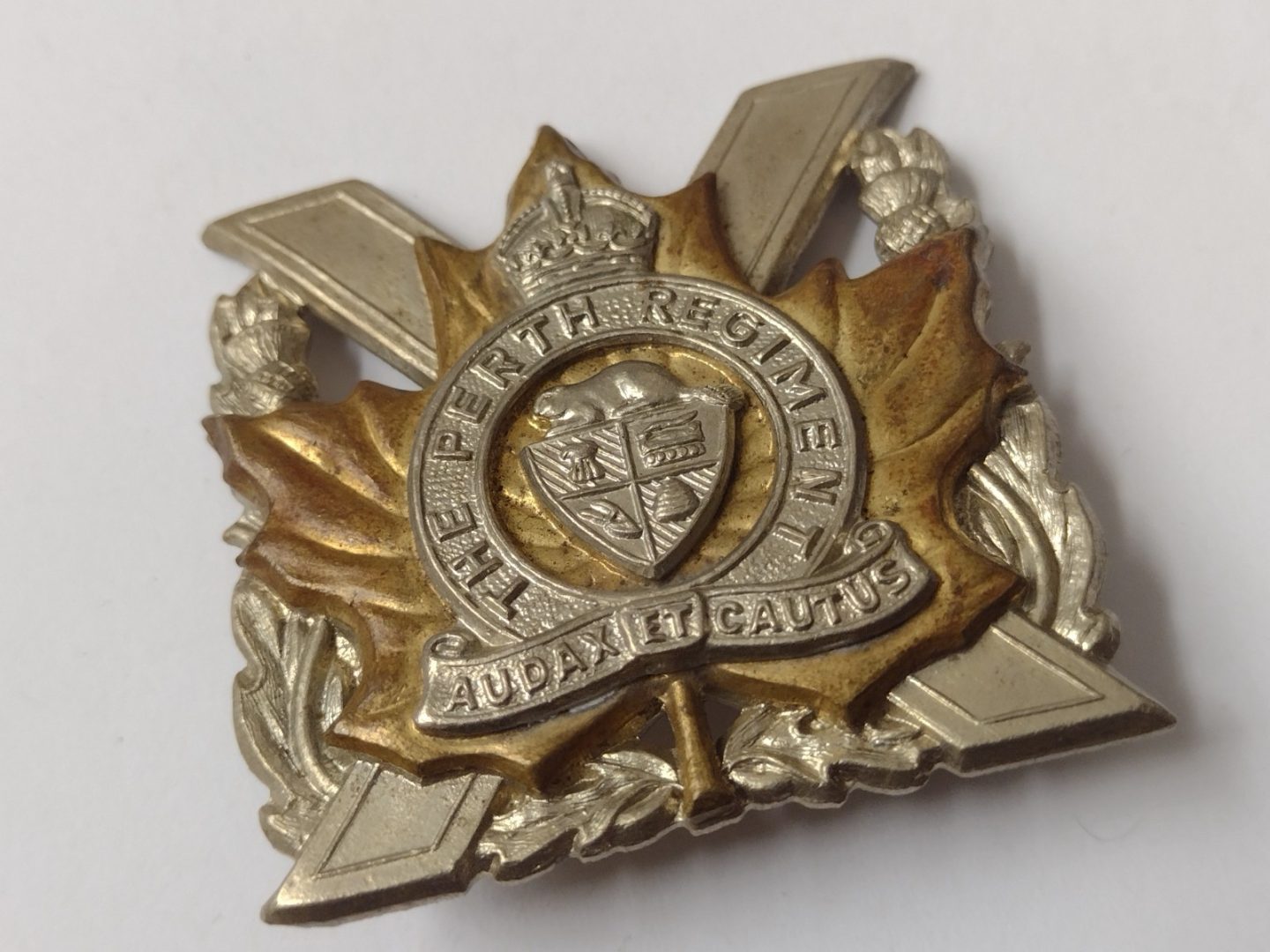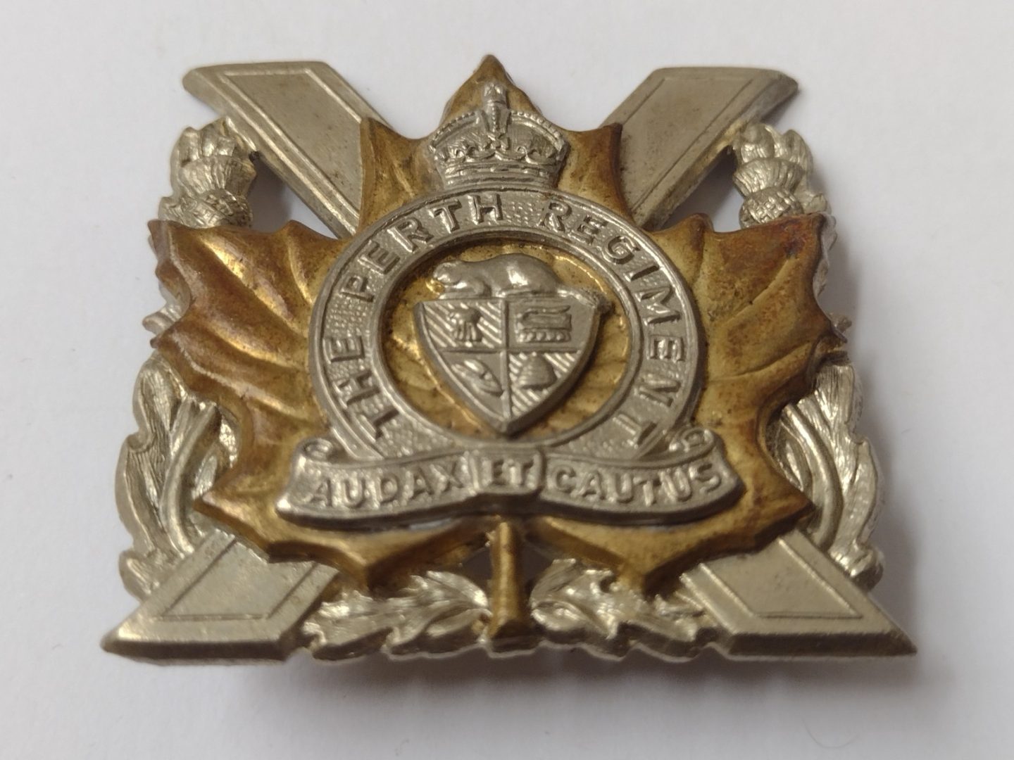 WW2 Canadian Army The Perth Regiment Infantry Cap Badge Bi-Metal 2Lugs Vintage