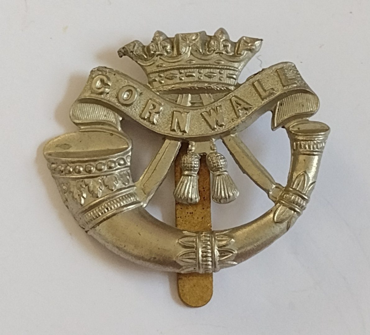 WW2 Duke of Cornwall’s Light Infantry Cap Badge White Metal maker Gaunt Vintage