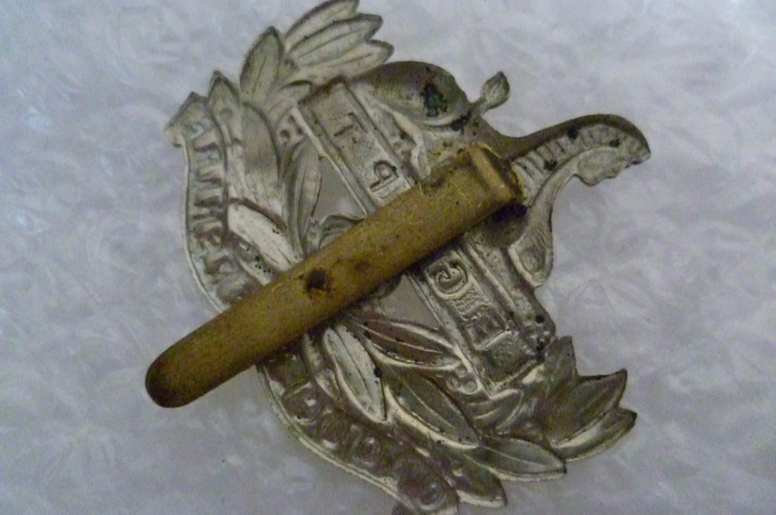 WW2 Gloucestershire Regiment Cap Badge White Metal Vintage Org