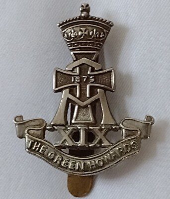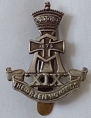 WW2 Green Howards Yorkshire Regiment Cap Badge White Metal Slider Vintage