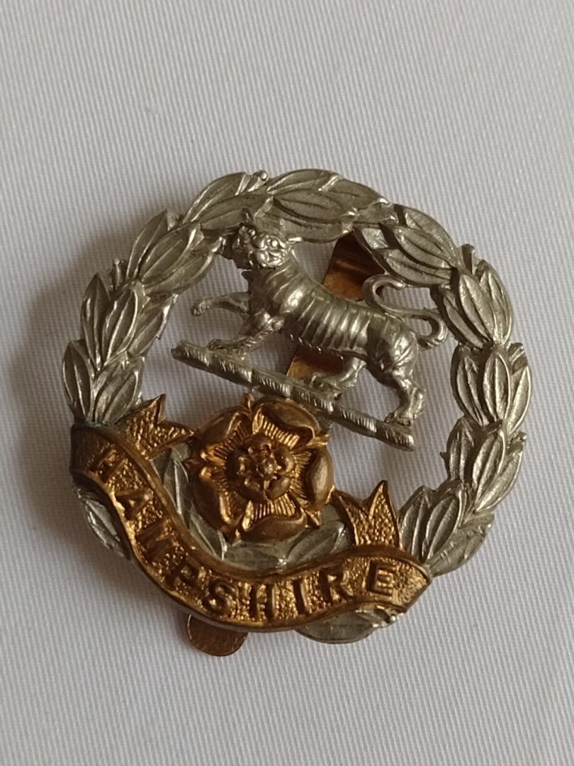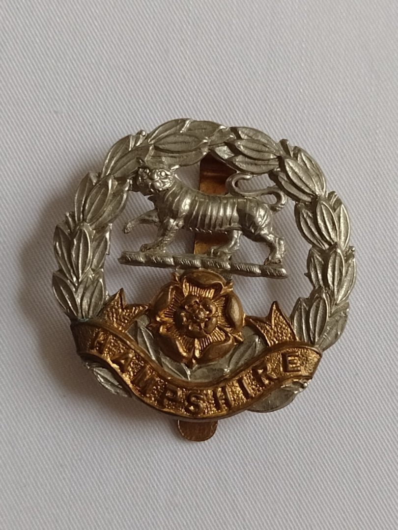 WW2 Hampshire Regiment Cap Badge Bi-metal Slider 42mm Vintage – Original