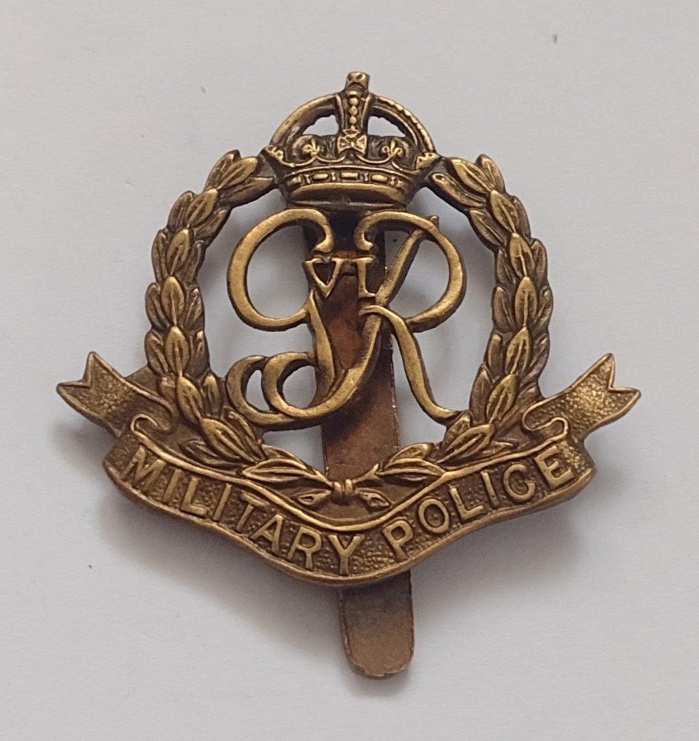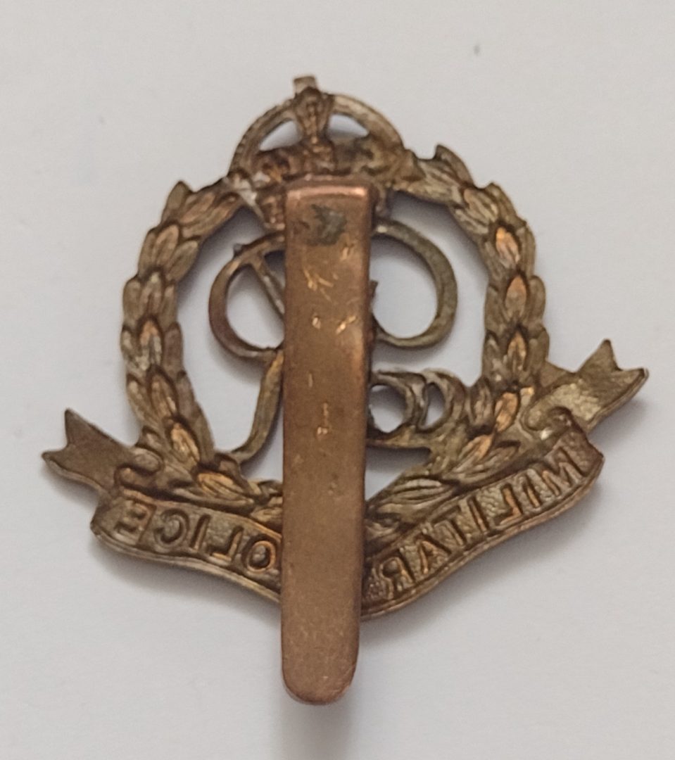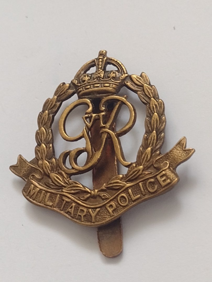 WW2 Military Police Cap Badge KC GVI Solid Brass Slider Vintage Original