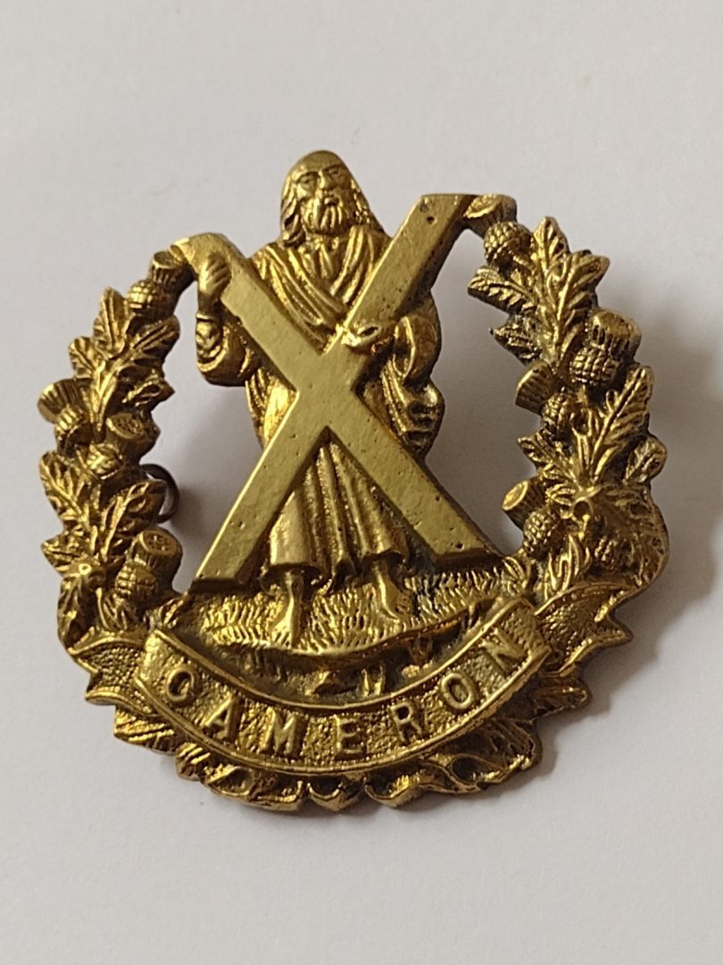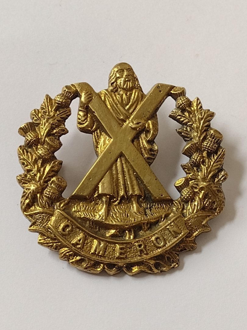 WW2 Queen’s Own Cameron Highlanders Cap Badge Cast Brass Vintage Original