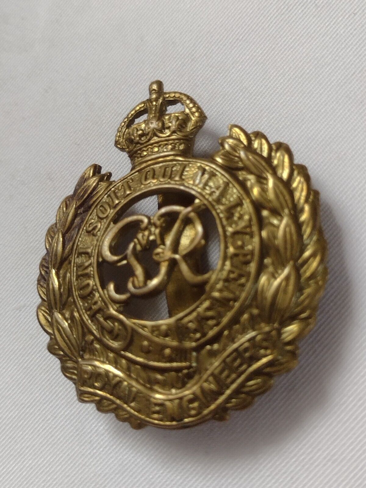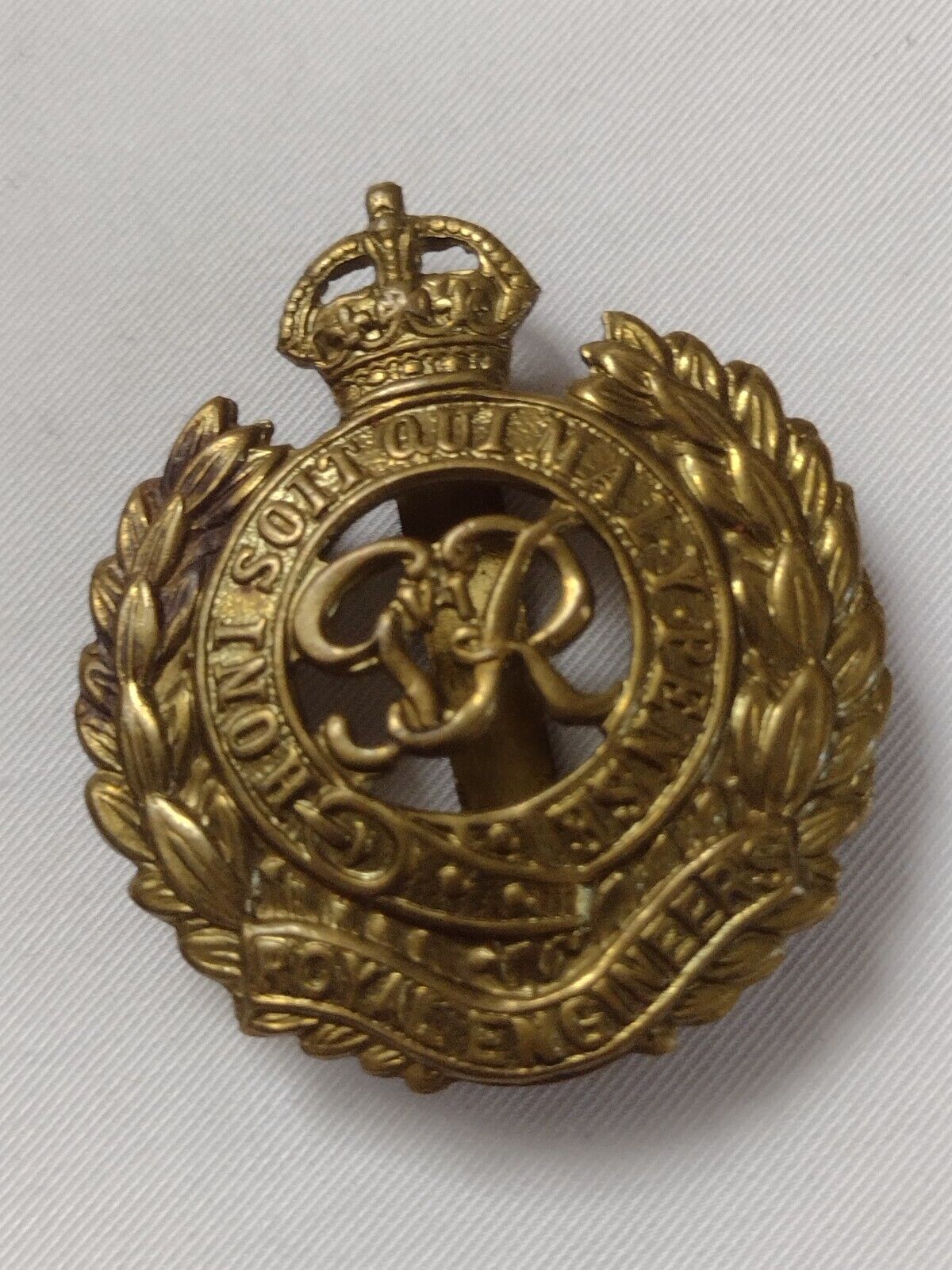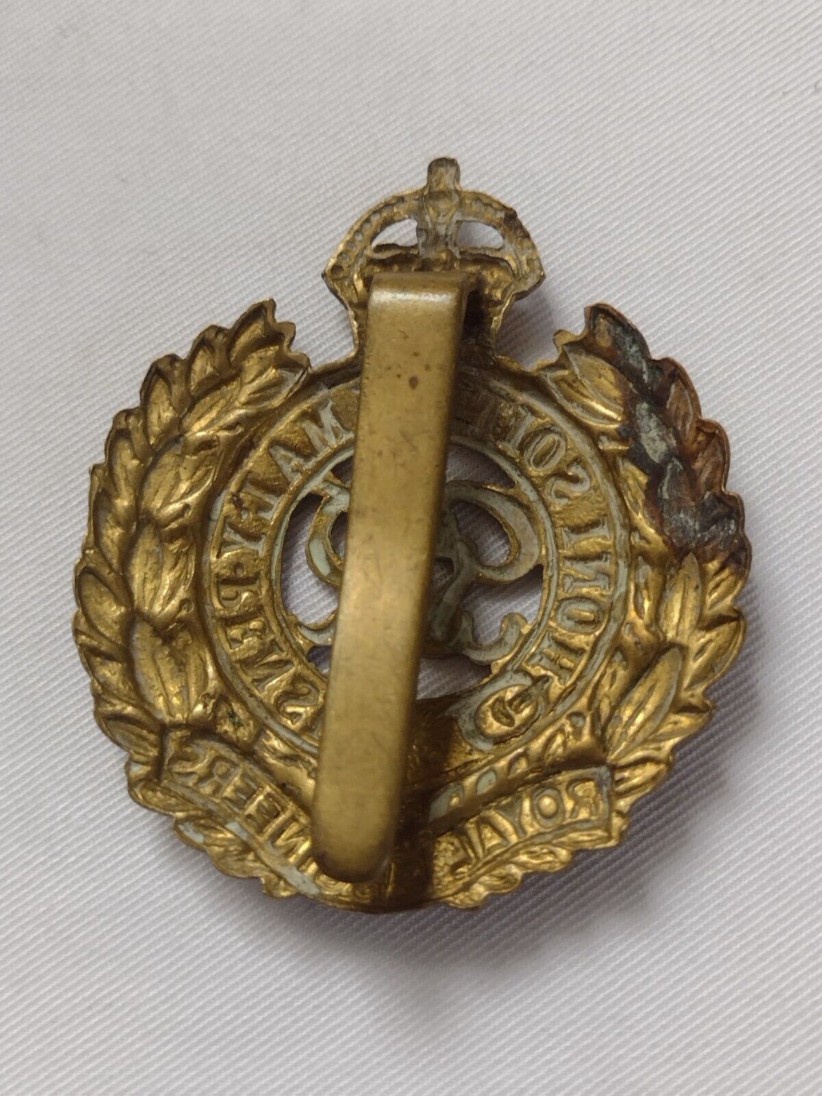 WW2 Royal Engineers Corps Cap Badge KC GVI Brass Slider 46mm Antique Original