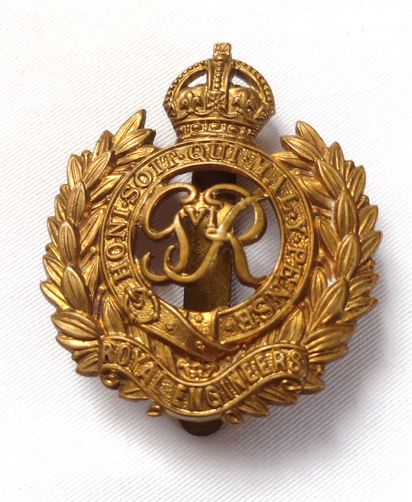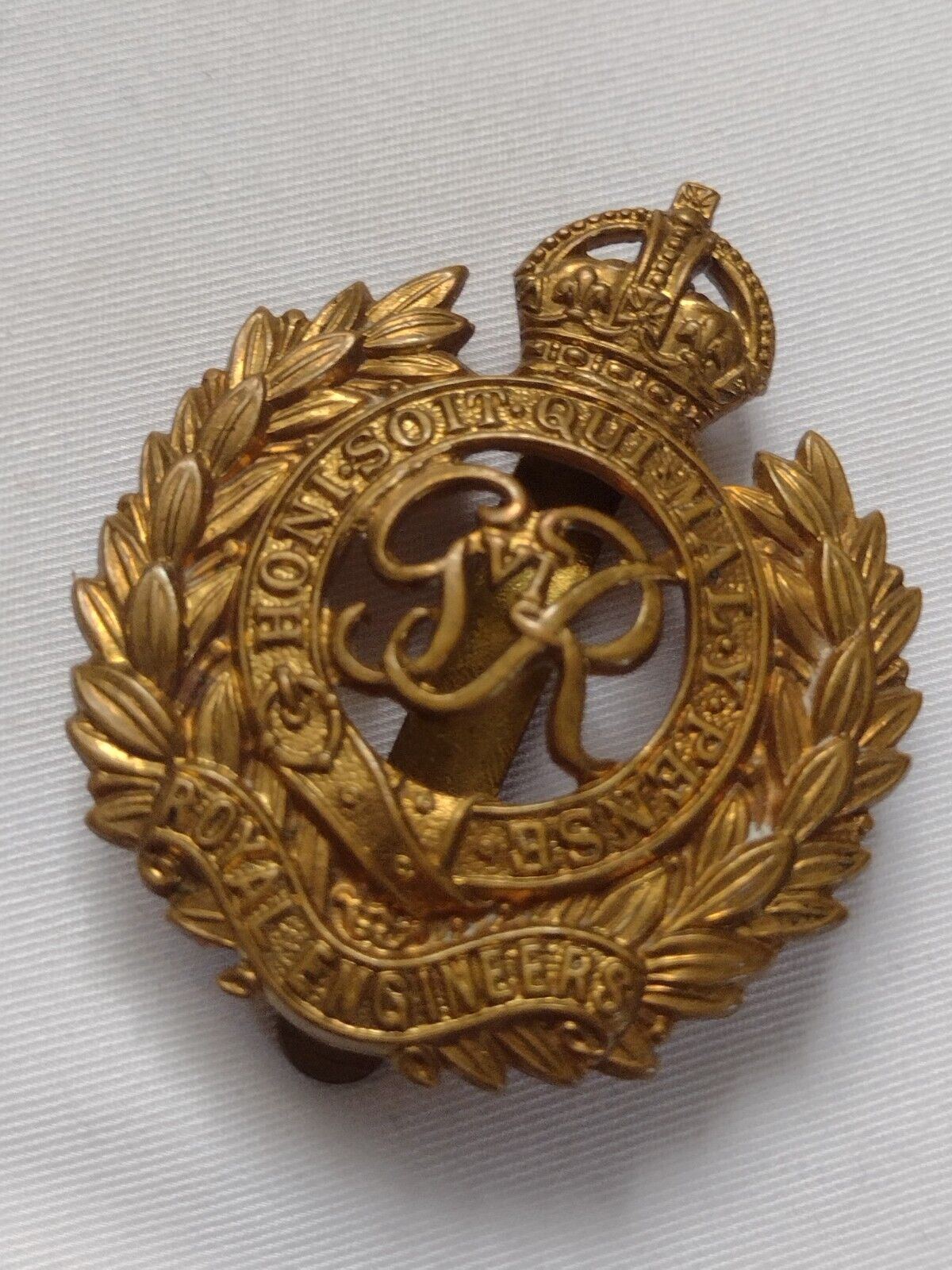WW2 Royal Engineers Corps Cap Badge KC GVI Brass Slider 48mm Antique Original