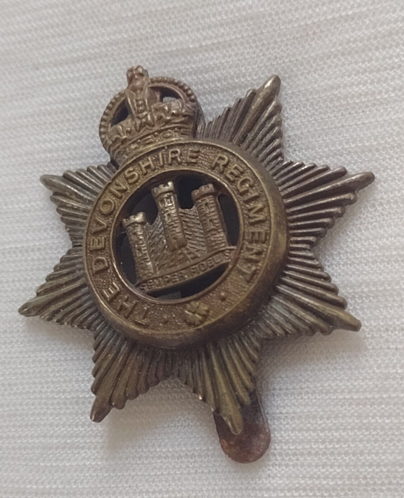 WW2 The Devonshire Regiment Cap Badge KC Bi-Metal Slider Vintage