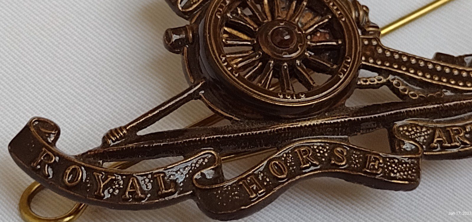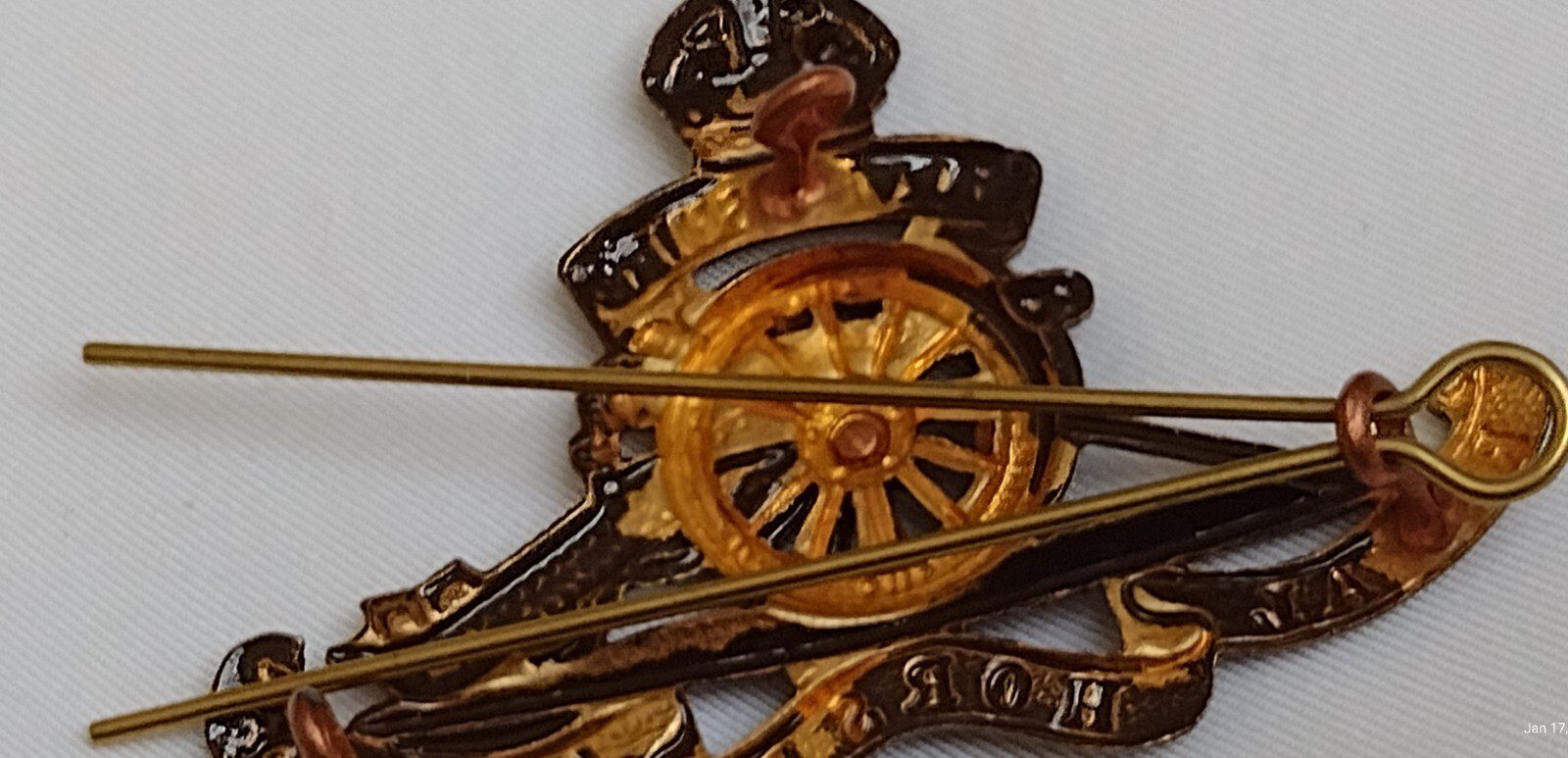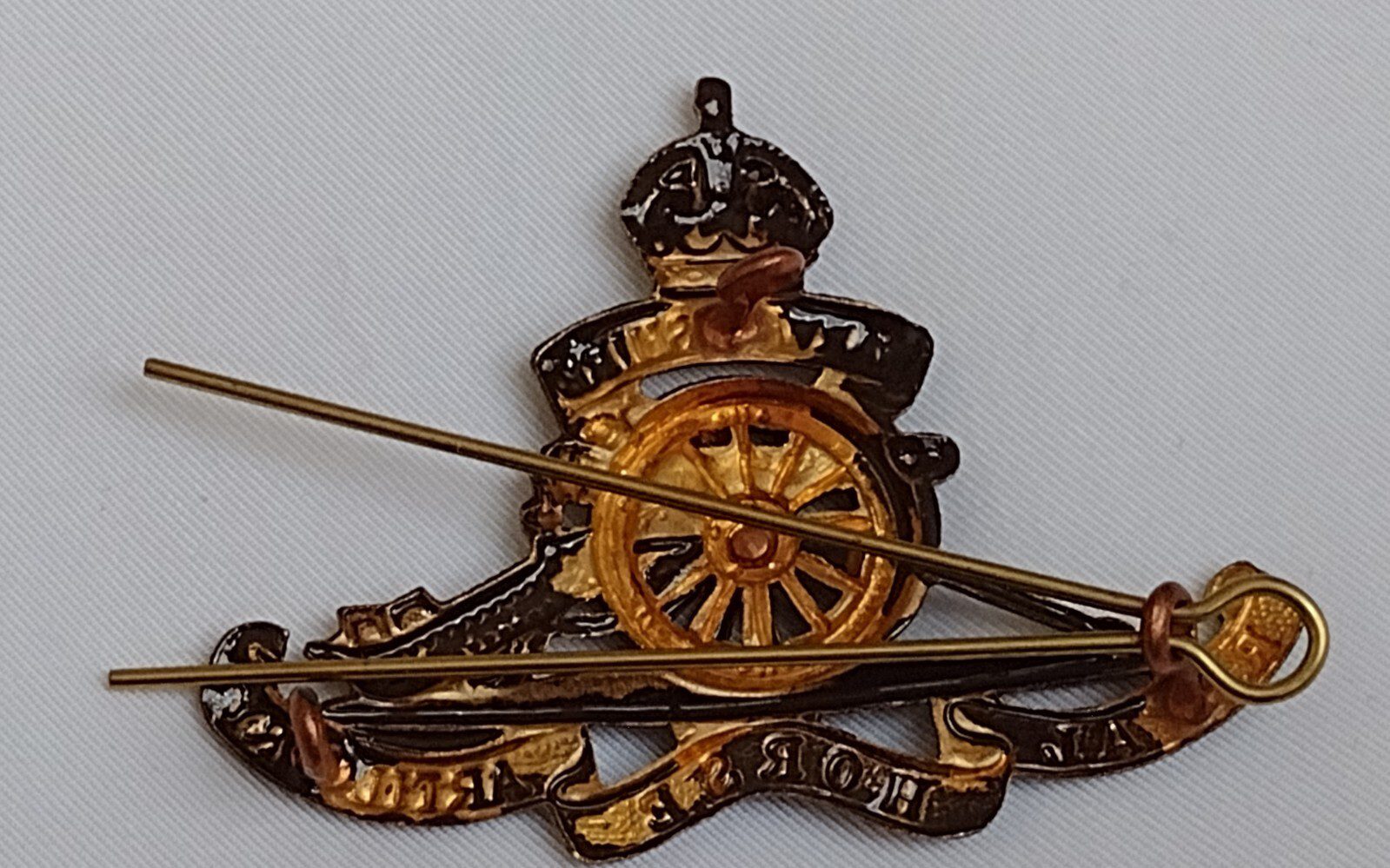 WWI Warwickshire Royal Horse Artillery Cap Badge Moving Wheel 3 Lugs VINTAGE