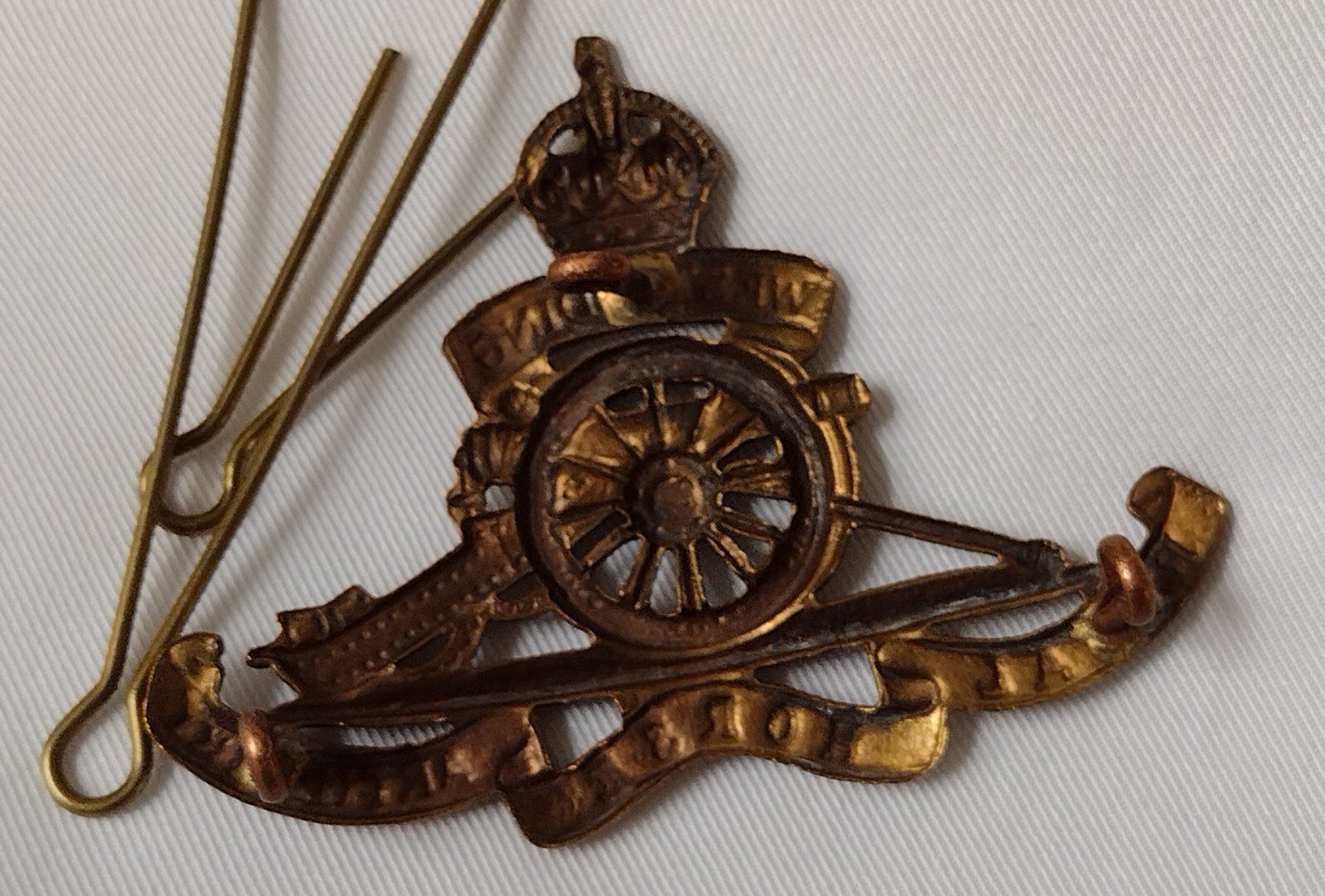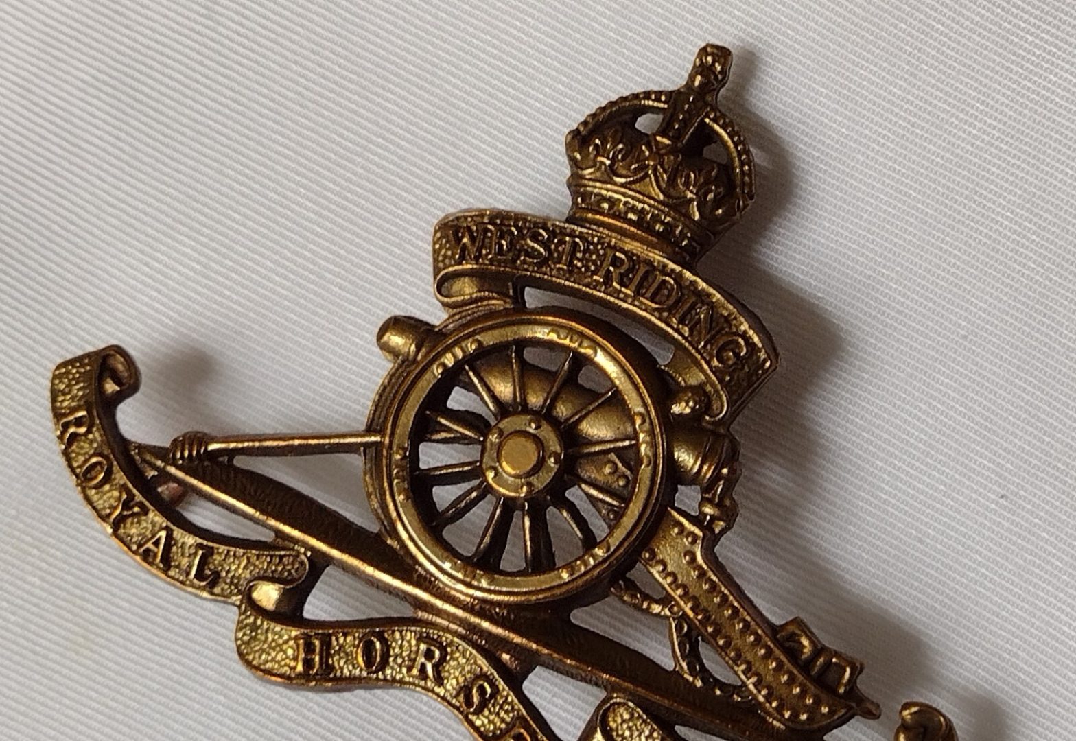 WWI West Riding Royal Horse Artillery Cap Badge KC Brass 3 Lugs ANTIQUE Org