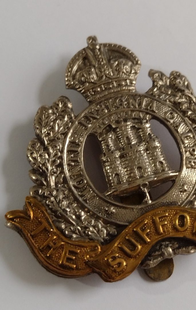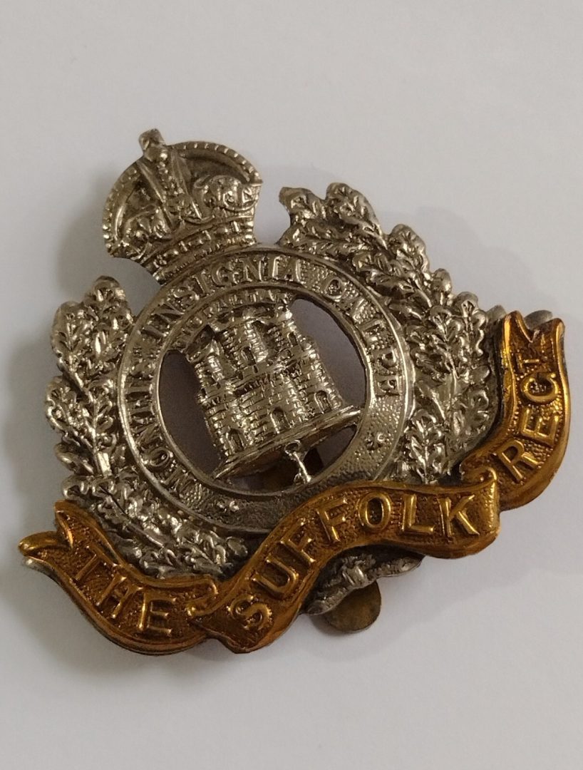 WWII The Suffolk Regiment Cap Badge KC Bi-Metal Slider 3 Tower VINTAGE Original